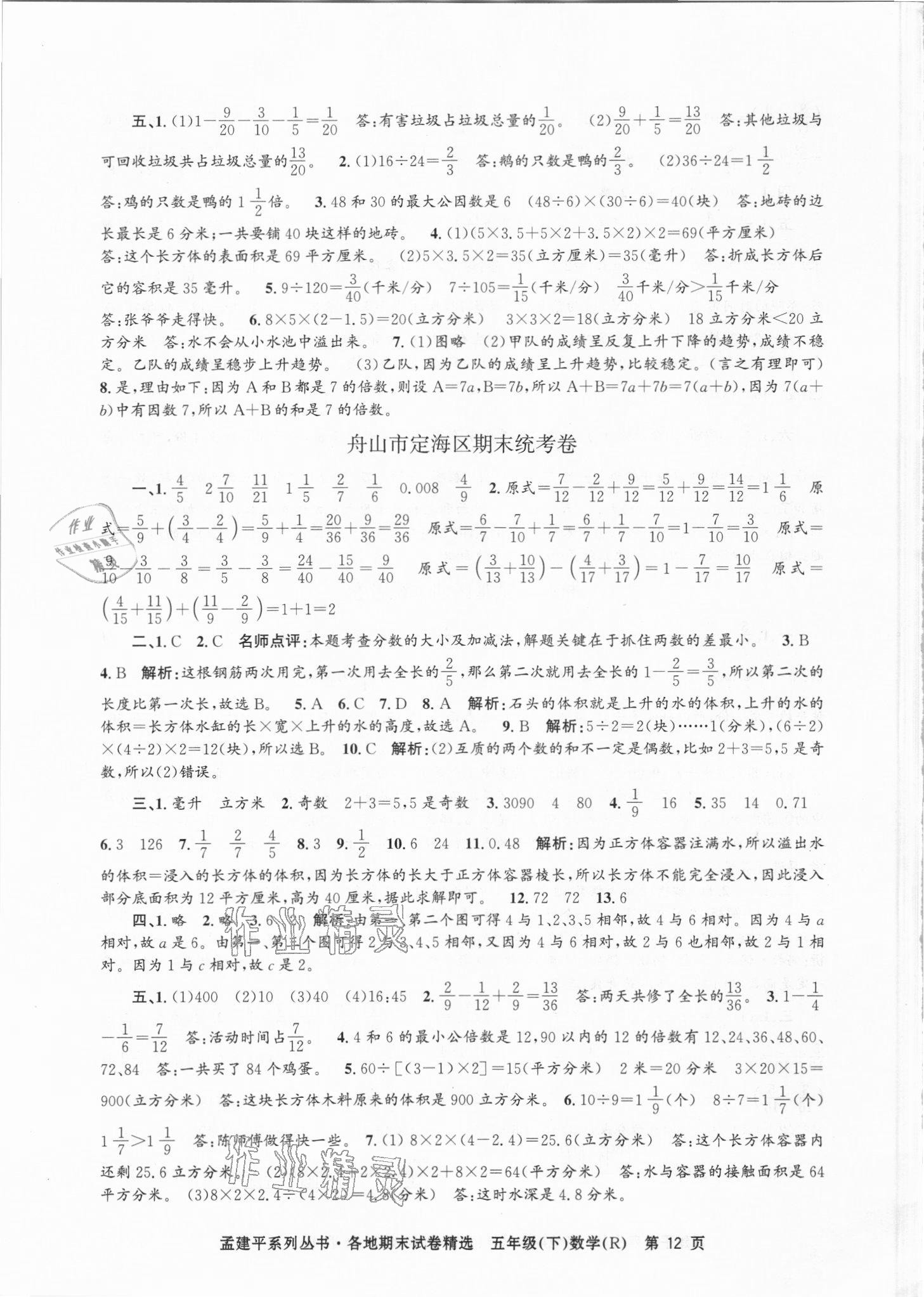 注:目前有些书本章节名称可能整理的还不是很完善,但都是按照顺序排列的,请同学们按照顺序仔细查找。练习册 2021年孟建平各地期末试卷精选五年级数学下册人教版台州专版 答案主要是用来给同学们做完题方便对答案用的,请勿直接抄袭。