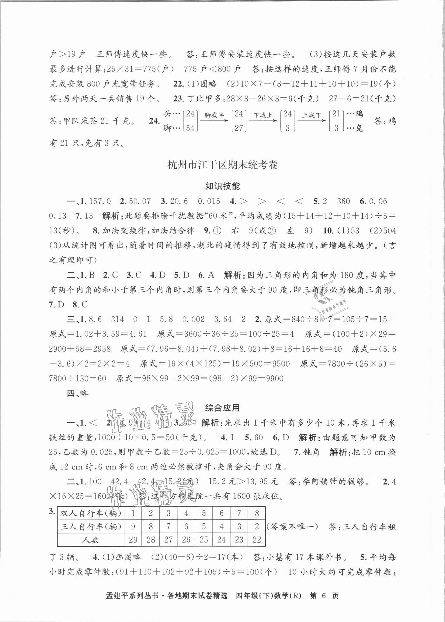 注:目前有些书本章节名称可能整理的还不是很完善,但都是按照顺序排列的,请同学们按照顺序仔细查找。练习册 2021年孟建平各地期末试卷精选四年级数学下册人教版台州专版 答案主要是用来给同学们做完题方便对答案用的,请勿直接抄袭。