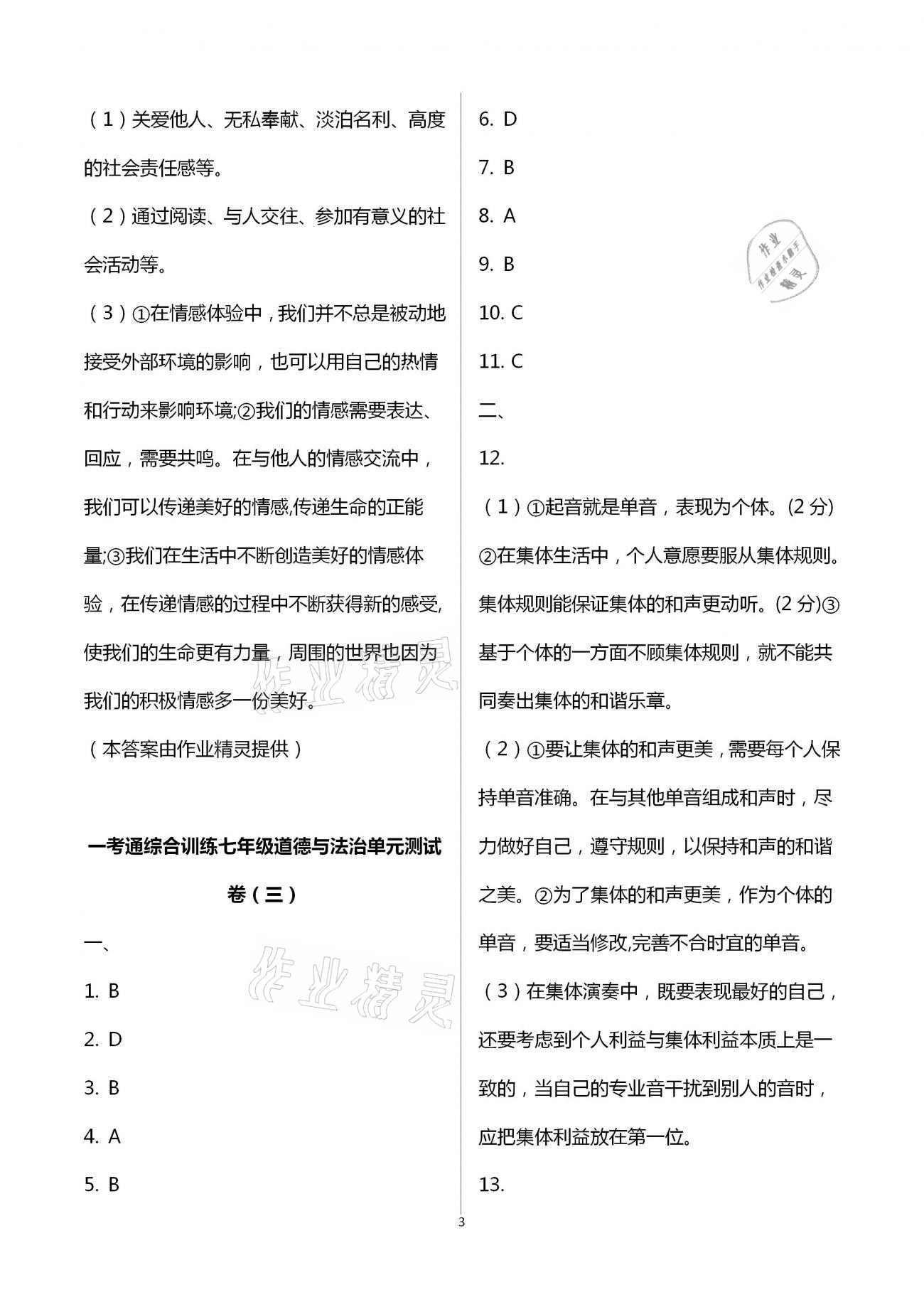 注:目前有些书本章节名称可能整理的还不是很完善,但都是按照顺序排列的,请同学们按照顺序仔细查找。练习册 2021年一考通综合训练副科七年级下册 答案主要是用来给同学们做完题方便对答案用的,请勿直接抄袭。