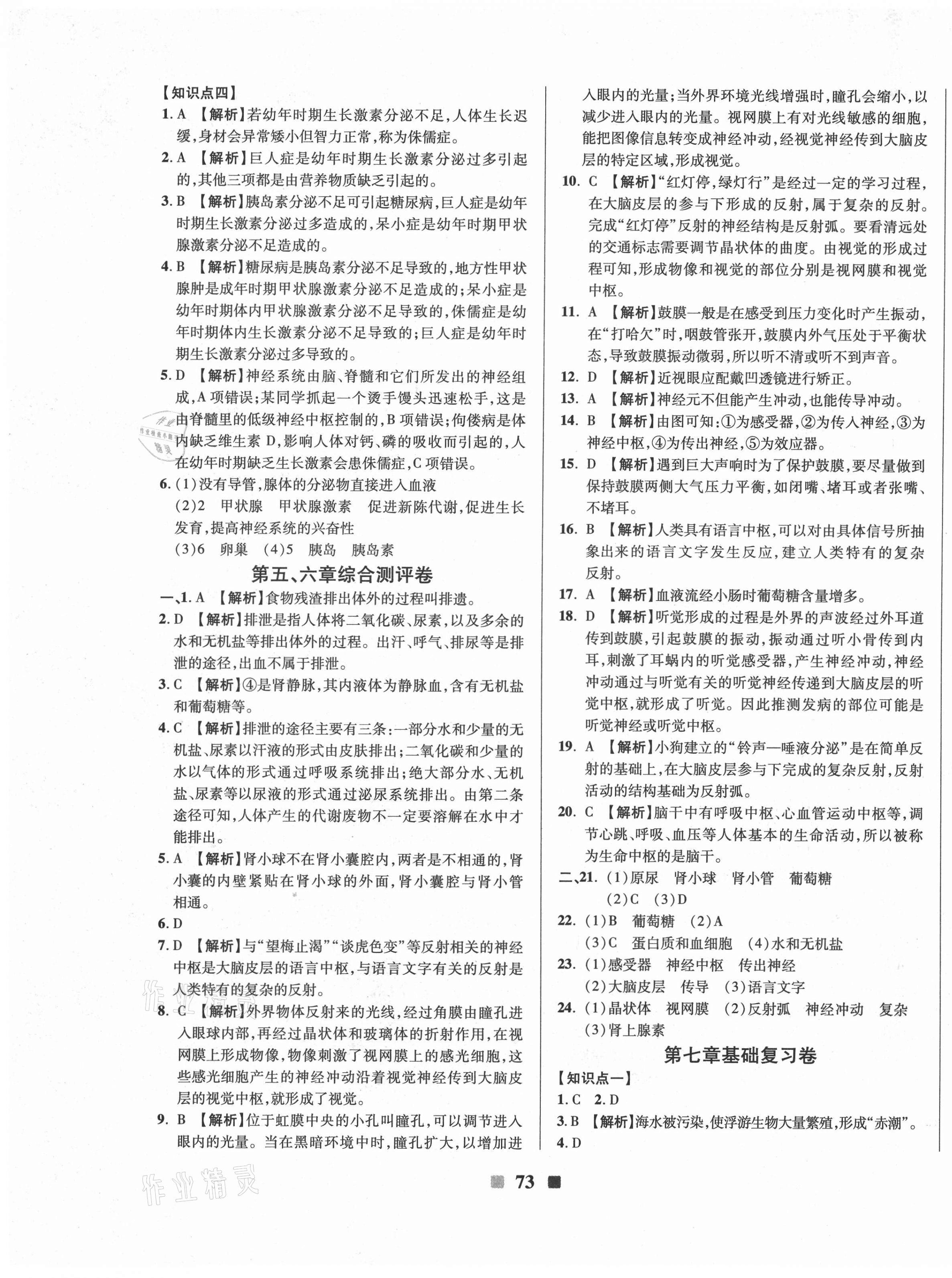注:目前有些书本章节名称可能整理的还不是很完善,但都是按照顺序排列的,请同学们按照顺序仔细查找。练习册 2021年优加全能大考卷七年级生物下册人教版 答案主要是用来给同学们做完题方便对答案用的,请勿直接抄袭。