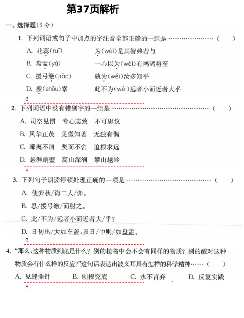 注:目前有些书本章节名称可能整理的还不是很完善,但都是按照顺序排列的,请同学们按照顺序仔细查找。练习册 2021年小学生综合素质标准卷六年级语文下册部编版金丽衢专版 答案主要是用来给同学们做完题方便对答案用的,请勿直接抄袭。