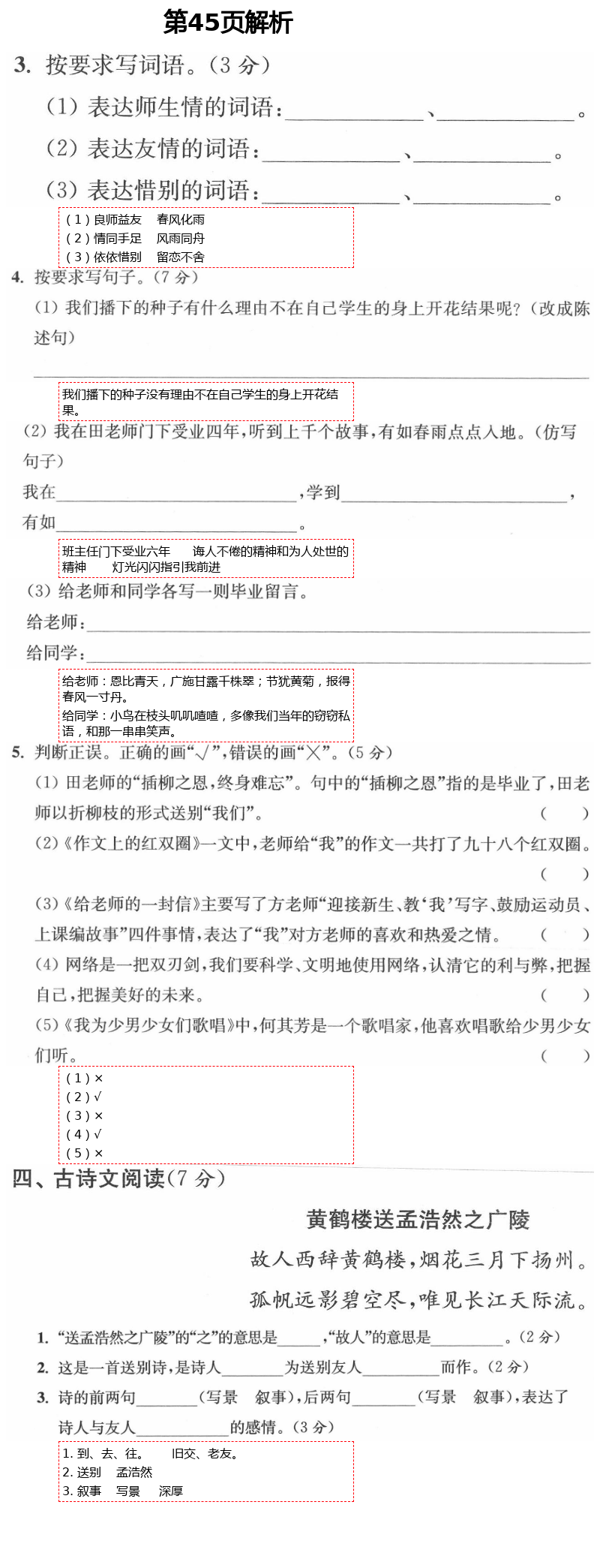 注:目前有些书本章节名称可能整理的还不是很完善,但都是按照顺序排列的,请同学们按照顺序仔细查找。练习册 2021年小学生综合素质标准卷六年级语文下册部编版金丽衢专版 答案主要是用来给同学们做完题方便对答案用的,请勿直接抄袭。