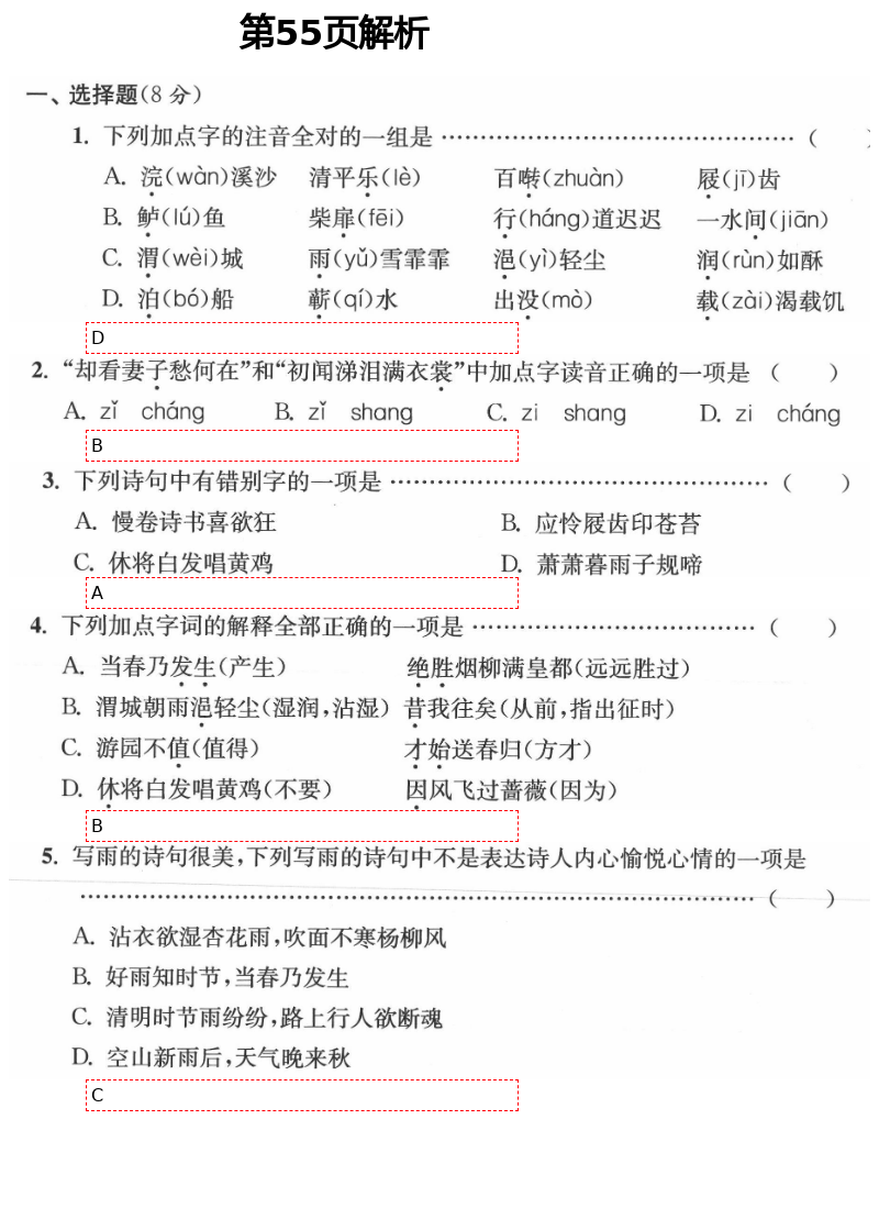 注:目前有些书本章节名称可能整理的还不是很完善,但都是按照顺序排列的,请同学们按照顺序仔细查找。练习册 2021年小学生综合素质标准卷六年级语文下册部编版金丽衢专版 答案主要是用来给同学们做完题方便对答案用的,请勿直接抄袭。