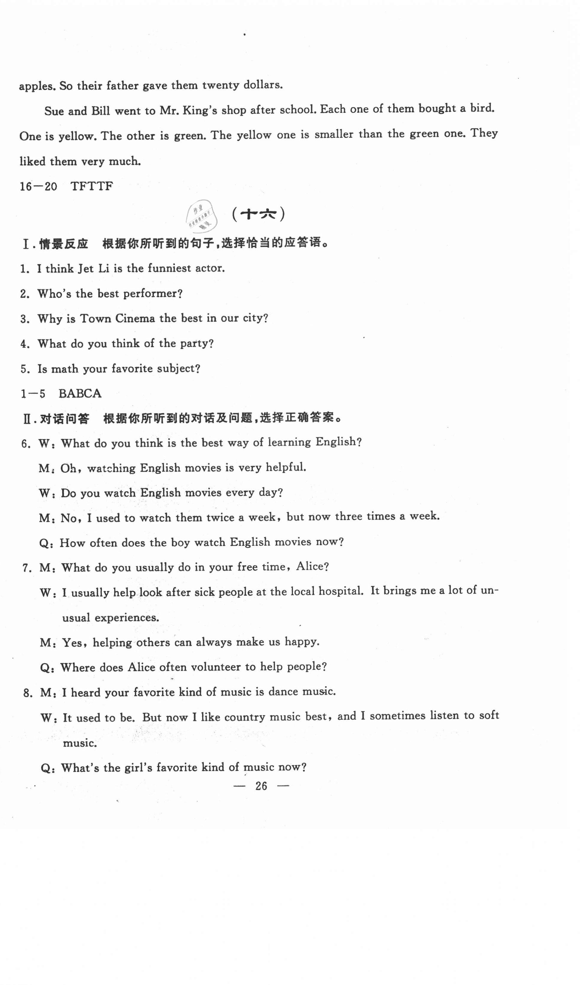 注:目前有些书本章节名称可能整理的还不是很完善,但都是按照顺序排列的,请同学们按照顺序仔细查找。练习册 2021年中考总复习英语听力人教版 答案主要是用来给同学们做完题方便对答案用的,请勿直接抄袭。