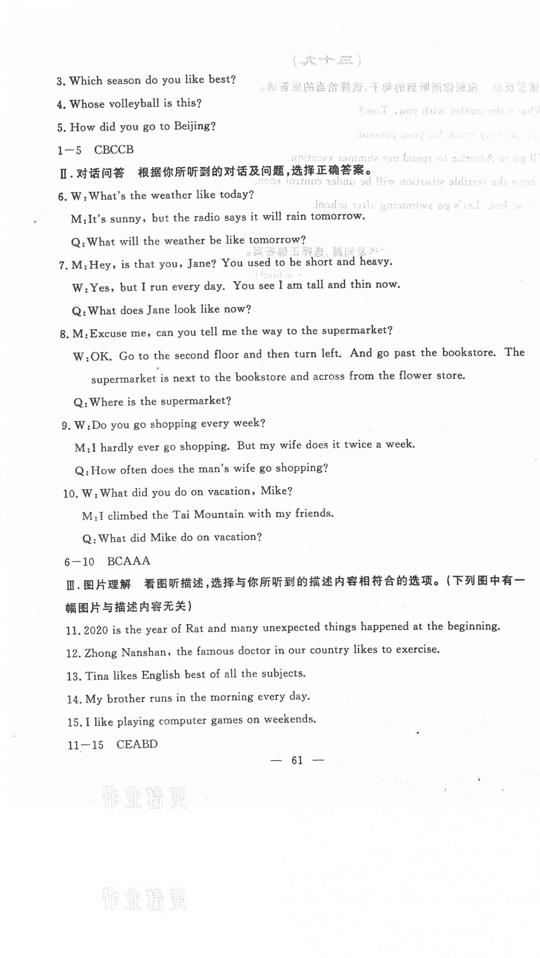 注:目前有些书本章节名称可能整理的还不是很完善,但都是按照顺序排列的,请同学们按照顺序仔细查找。练习册 2021年中考总复习英语听力人教版 答案主要是用来给同学们做完题方便对答案用的,请勿直接抄袭。