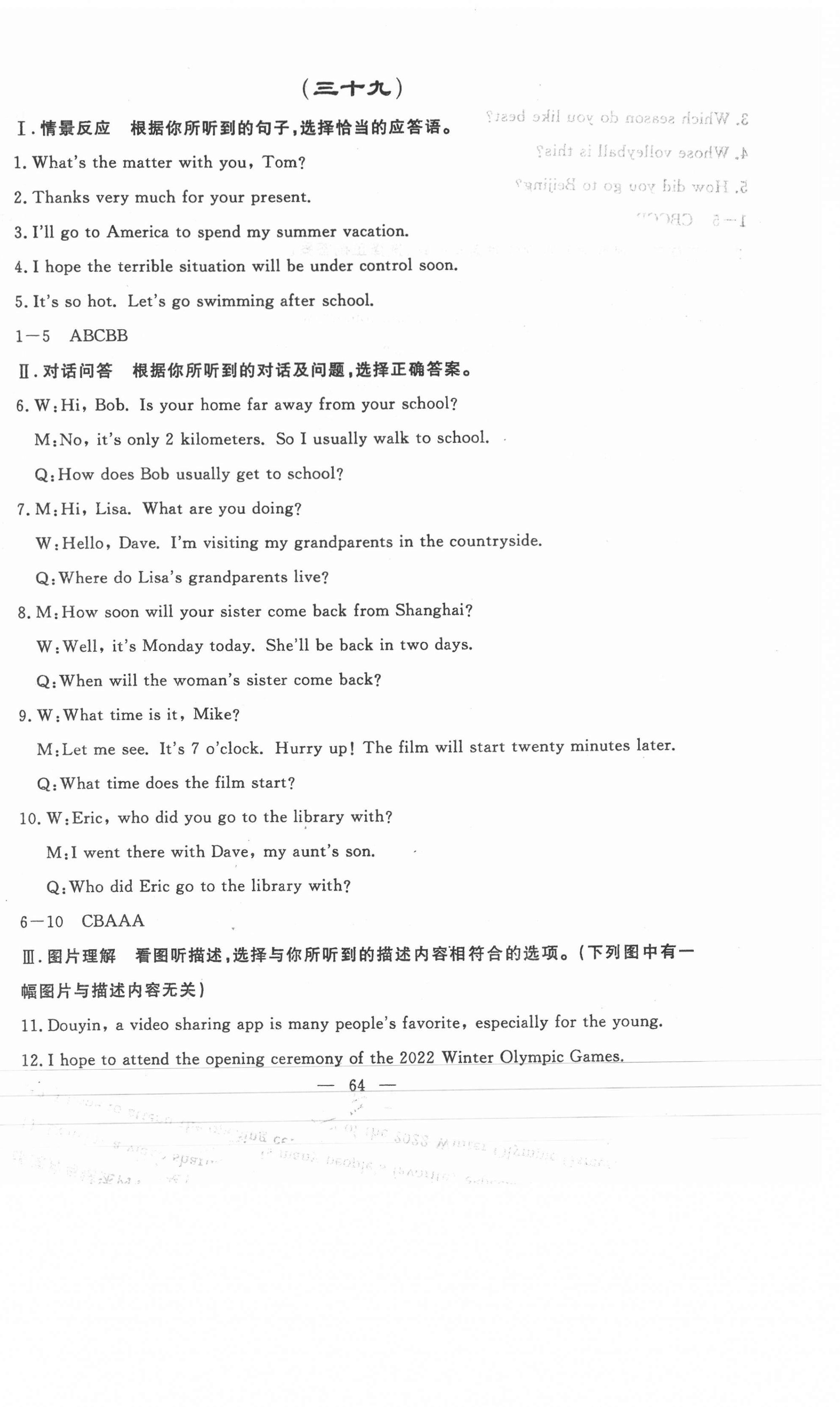 注:目前有些书本章节名称可能整理的还不是很完善,但都是按照顺序排列的,请同学们按照顺序仔细查找。练习册 2021年中考总复习英语听力人教版 答案主要是用来给同学们做完题方便对答案用的,请勿直接抄袭。