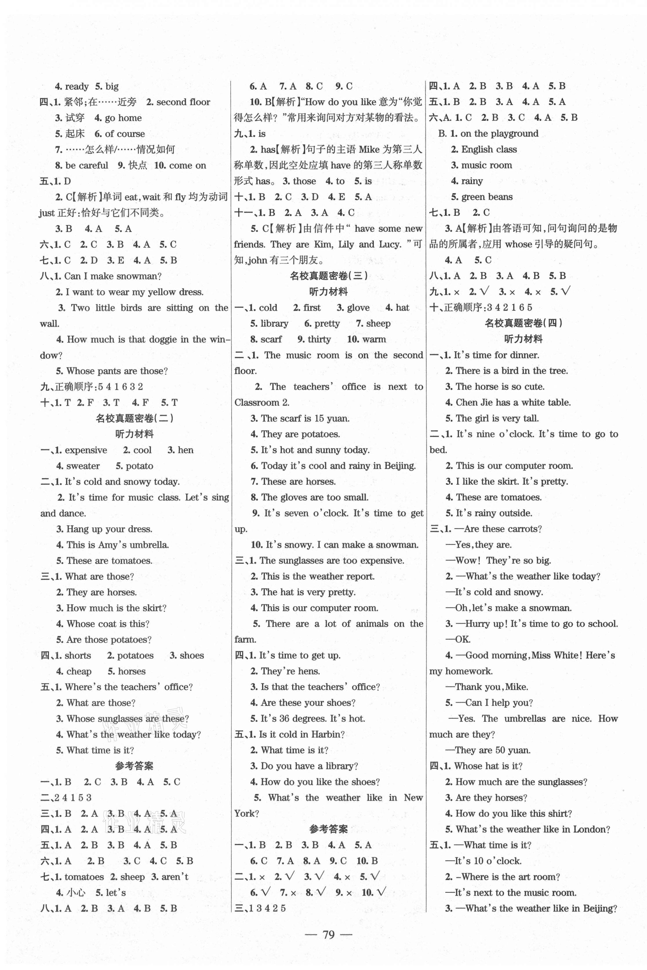 2021年金钥匙期末冲刺100分四年级英语下册人教PEP版