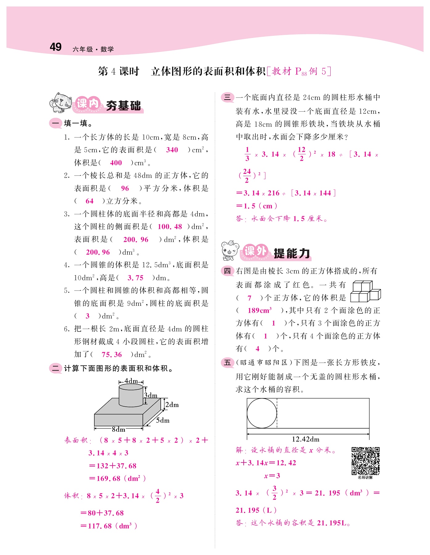 注:目前有些书本章节名称可能整理的还不是很完善,但都是按照顺序排列的,请同学们按照顺序仔细查找。练习册 2021年梯田文化课堂内外六年级数学下册人教版福建专版 答案主要是用来给同学们做完题方便对答案用的,请勿直接抄袭。