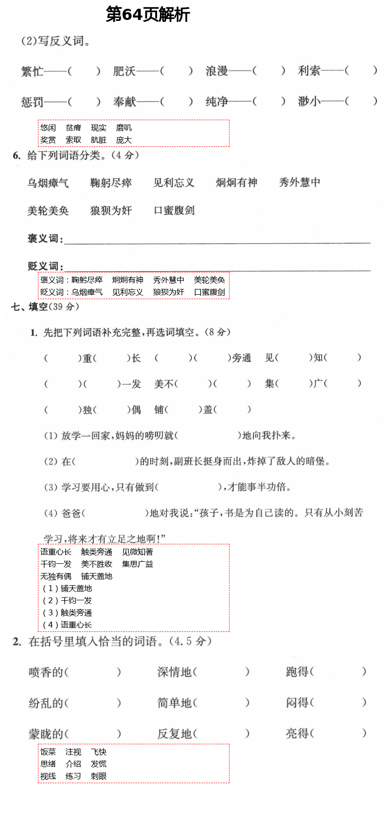 注:目前有些书本章节名称可能整理的还不是很完善,但都是按照顺序排列的,请同学们按照顺序仔细查找。练习册 2021年小学生综合素质标准卷六年级语文下册部编版金丽衢专版 答案主要是用来给同学们做完题方便对答案用的,请勿直接抄袭。