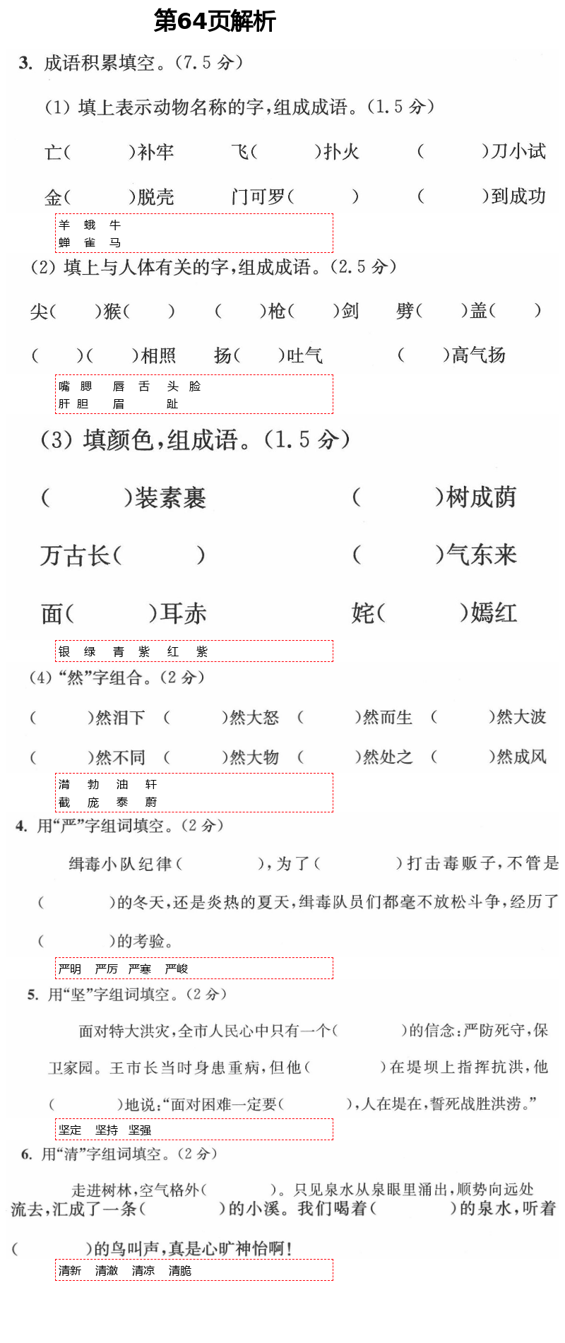 注:目前有些书本章节名称可能整理的还不是很完善,但都是按照顺序排列的,请同学们按照顺序仔细查找。练习册 2021年小学生综合素质标准卷六年级语文下册部编版金丽衢专版 答案主要是用来给同学们做完题方便对答案用的,请勿直接抄袭。