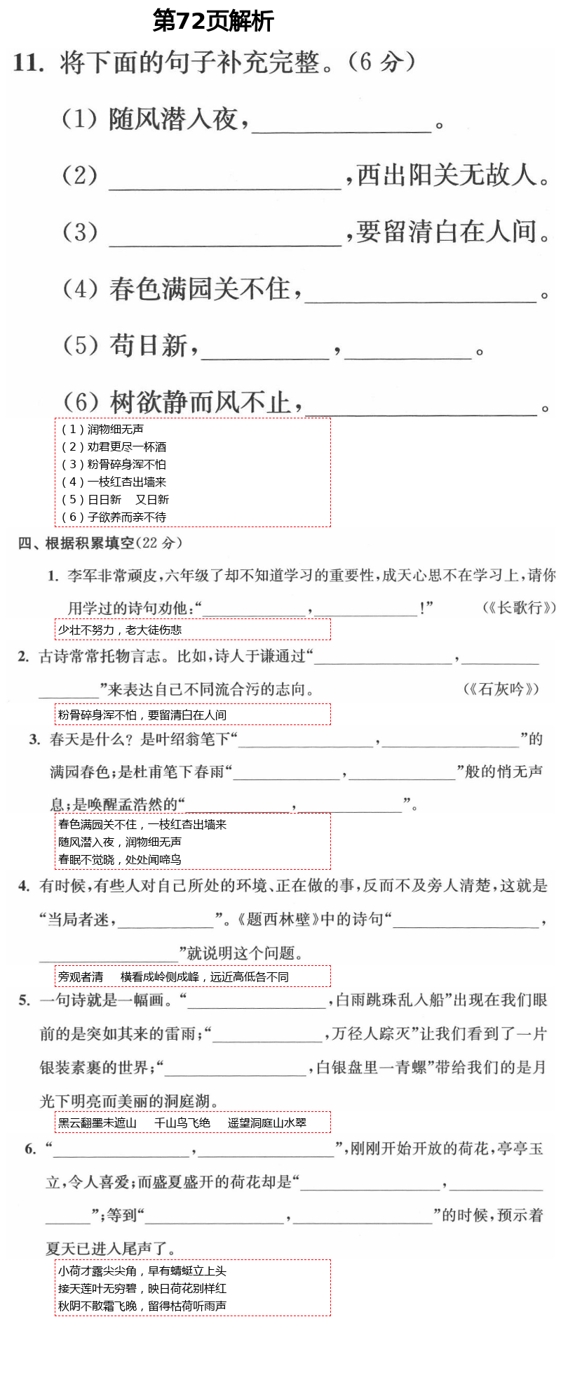 注:目前有些书本章节名称可能整理的还不是很完善,但都是按照顺序排列的,请同学们按照顺序仔细查找。练习册 2021年小学生综合素质标准卷六年级语文下册部编版金丽衢专版 答案主要是用来给同学们做完题方便对答案用的,请勿直接抄袭。
