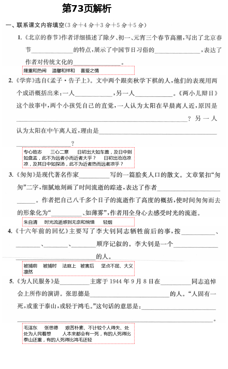 注:目前有些书本章节名称可能整理的还不是很完善,但都是按照顺序排列的,请同学们按照顺序仔细查找。练习册 2021年小学生综合素质标准卷六年级语文下册部编版金丽衢专版 答案主要是用来给同学们做完题方便对答案用的,请勿直接抄袭。
