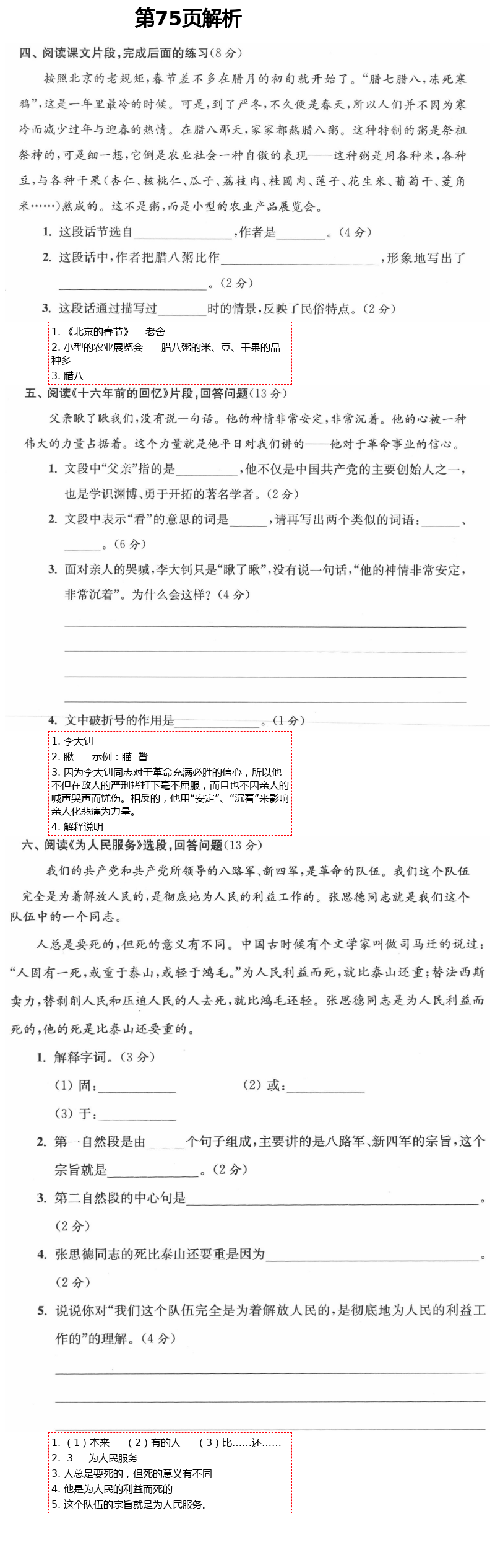 注:目前有些书本章节名称可能整理的还不是很完善,但都是按照顺序排列的,请同学们按照顺序仔细查找。练习册 2021年小学生综合素质标准卷六年级语文下册部编版金丽衢专版 答案主要是用来给同学们做完题方便对答案用的,请勿直接抄袭。