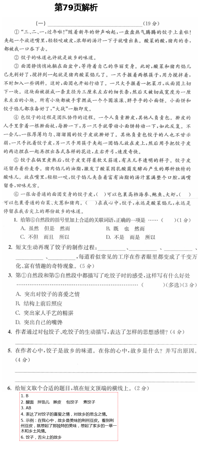 注:目前有些书本章节名称可能整理的还不是很完善,但都是按照顺序排列的,请同学们按照顺序仔细查找。练习册 2021年小学生综合素质标准卷六年级语文下册部编版金丽衢专版 答案主要是用来给同学们做完题方便对答案用的,请勿直接抄袭。