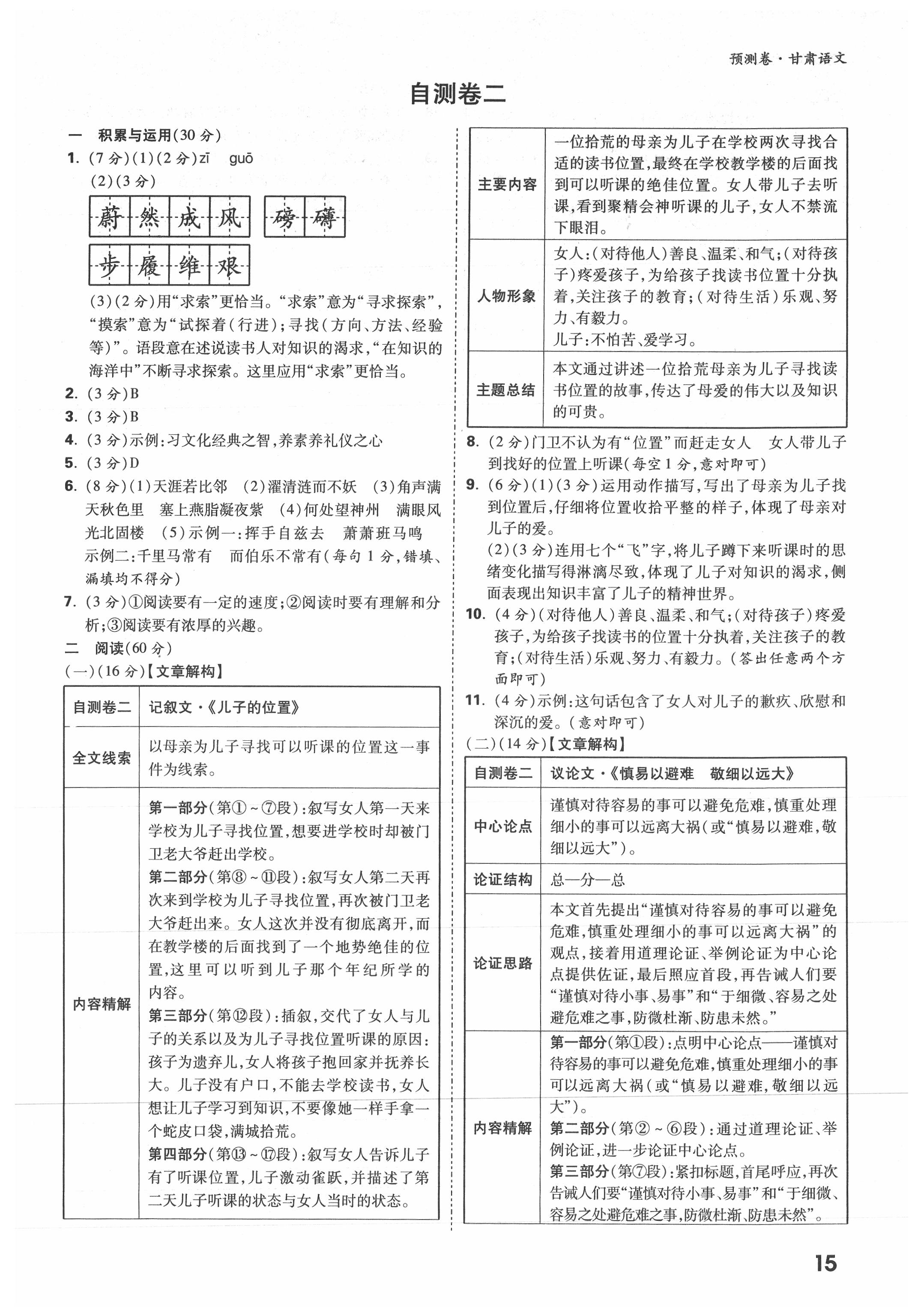 2021年万唯中考预测卷语文甘肃专版