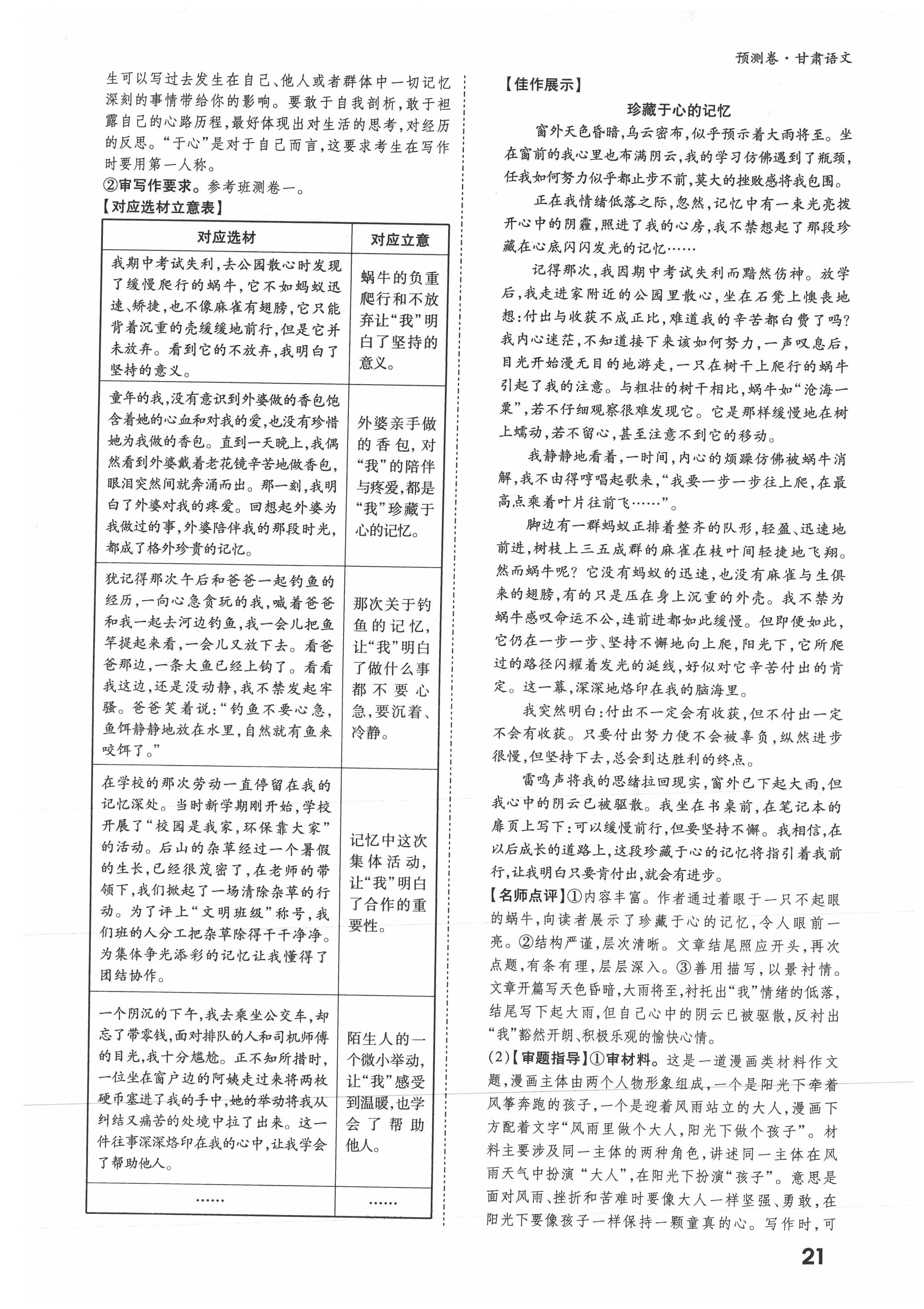 2021年万唯中考预测卷语文甘肃专版