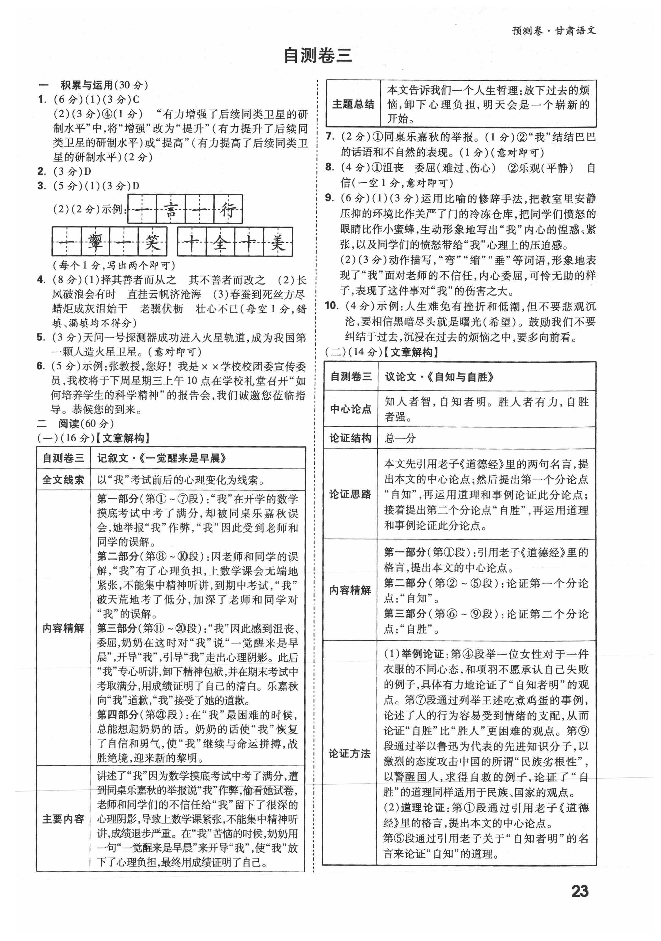 注:目前有些书本章节名称可能整理的还不是很完善,但都是按照顺序排列的,请同学们按照顺序仔细查找。练习册 2021年万唯中考预测卷语文甘肃专版 答案主要是用来给同学们做完题方便对答案用的,请勿直接抄袭。