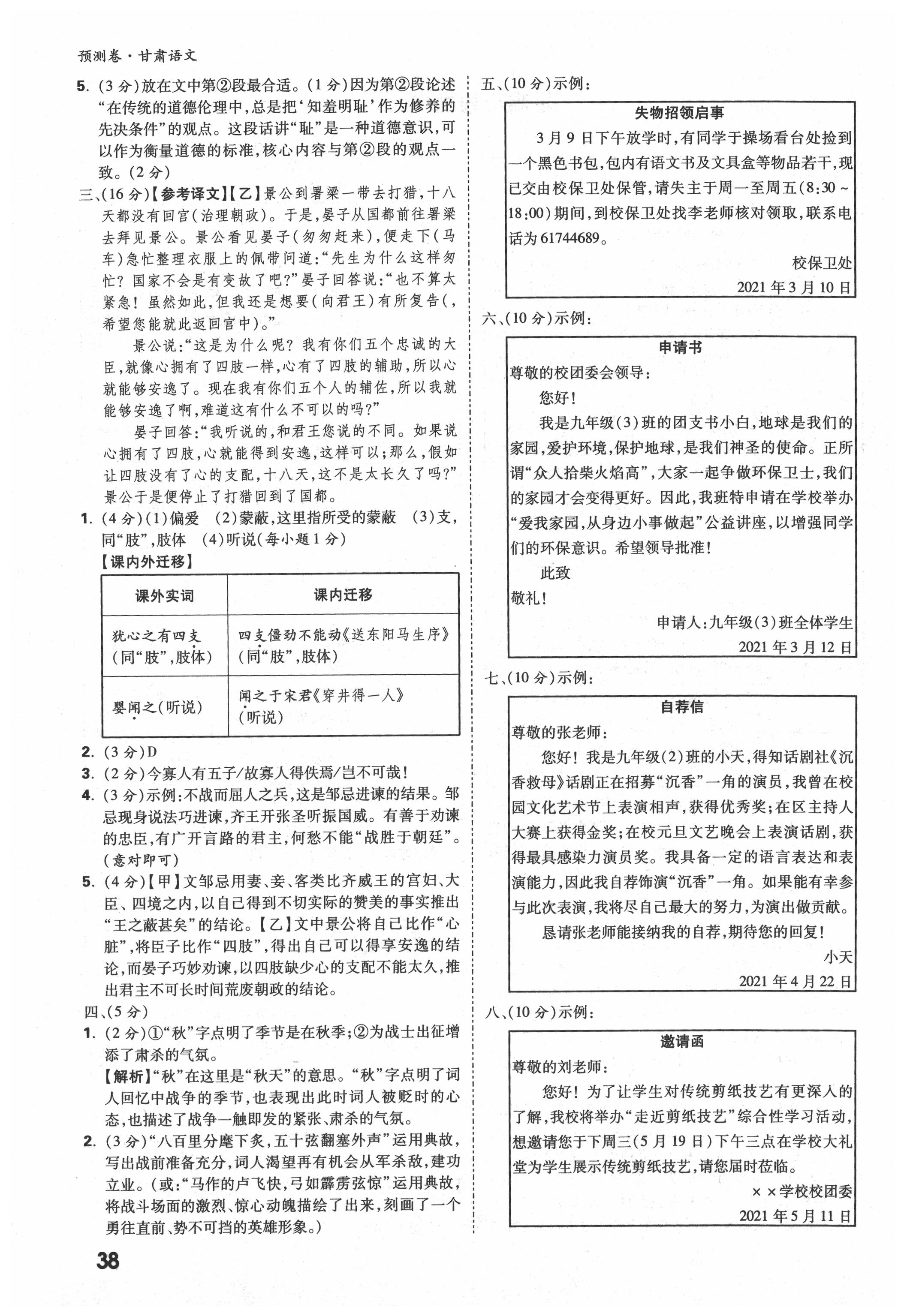 注:目前有些书本章节名称可能整理的还不是很完善,但都是按照顺序排列的,请同学们按照顺序仔细查找。练习册 2021年万唯中考预测卷语文甘肃专版 答案主要是用来给同学们做完题方便对答案用的,请勿直接抄袭。
