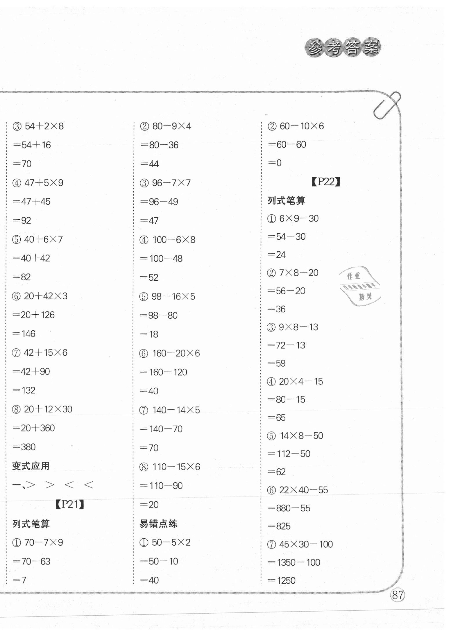 注:目前有些书本章节名称可能整理的还不是很完善,但都是按照顺序排列的,请同学们按照顺序仔细查找。练习册 2021年培优口算题卡三年级下册苏教版 答案主要是用来给同学们做完题方便对答案用的,请勿直接抄袭。
