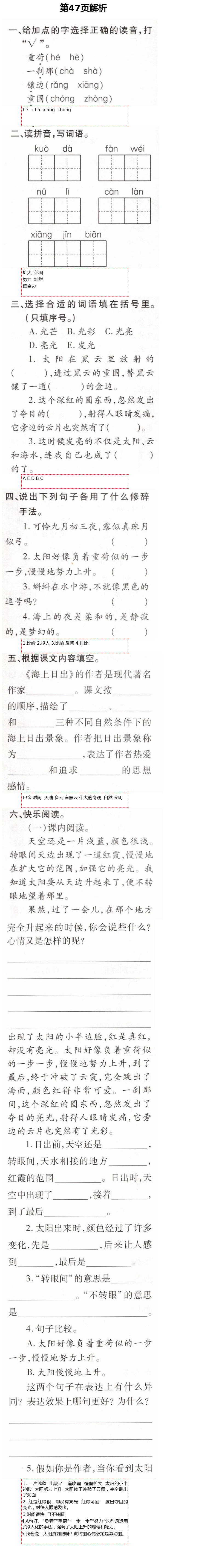 注:目前有些书本章节名称可能整理的还不是很完善,但都是按照顺序排列的,请同学们按照顺序仔细查找。练习册 2021年新课堂同步学习与探究四年级语文下册人教版54制泰安专版 答案主要是用来给同学们做完题方便对答案用的,请勿直接抄袭。