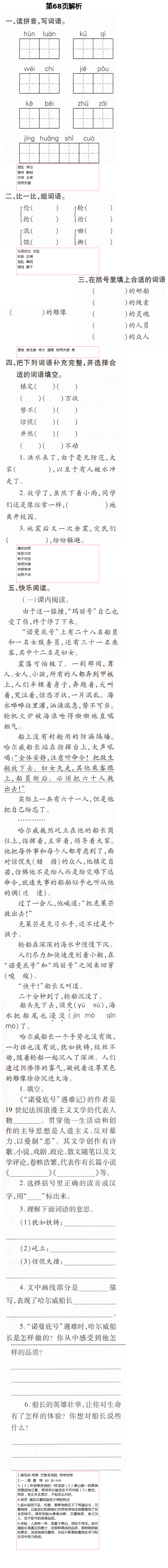 注:目前有些书本章节名称可能整理的还不是很完善,但都是按照顺序排列的,请同学们按照顺序仔细查找。练习册 2021年新课堂同步学习与探究四年级语文下册人教版54制泰安专版 答案主要是用来给同学们做完题方便对答案用的,请勿直接抄袭。