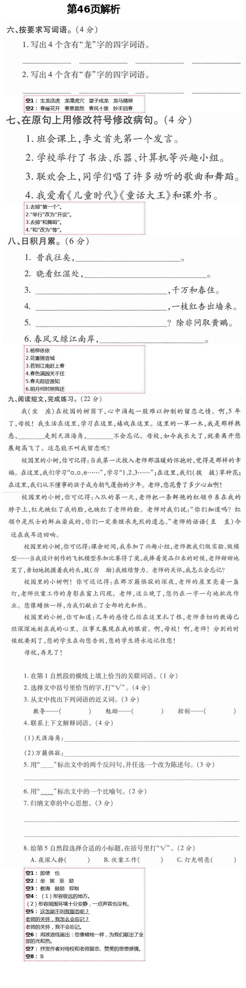 注:目前有些书本章节名称可能整理的还不是很完善,但都是按照顺序排列的,请同学们按照顺序仔细查找。练习册 2021年新课堂同步学习与探究五年级语文下册人教版54制泰安专版 答案主要是用来给同学们做完题方便对答案用的,请勿直接抄袭。