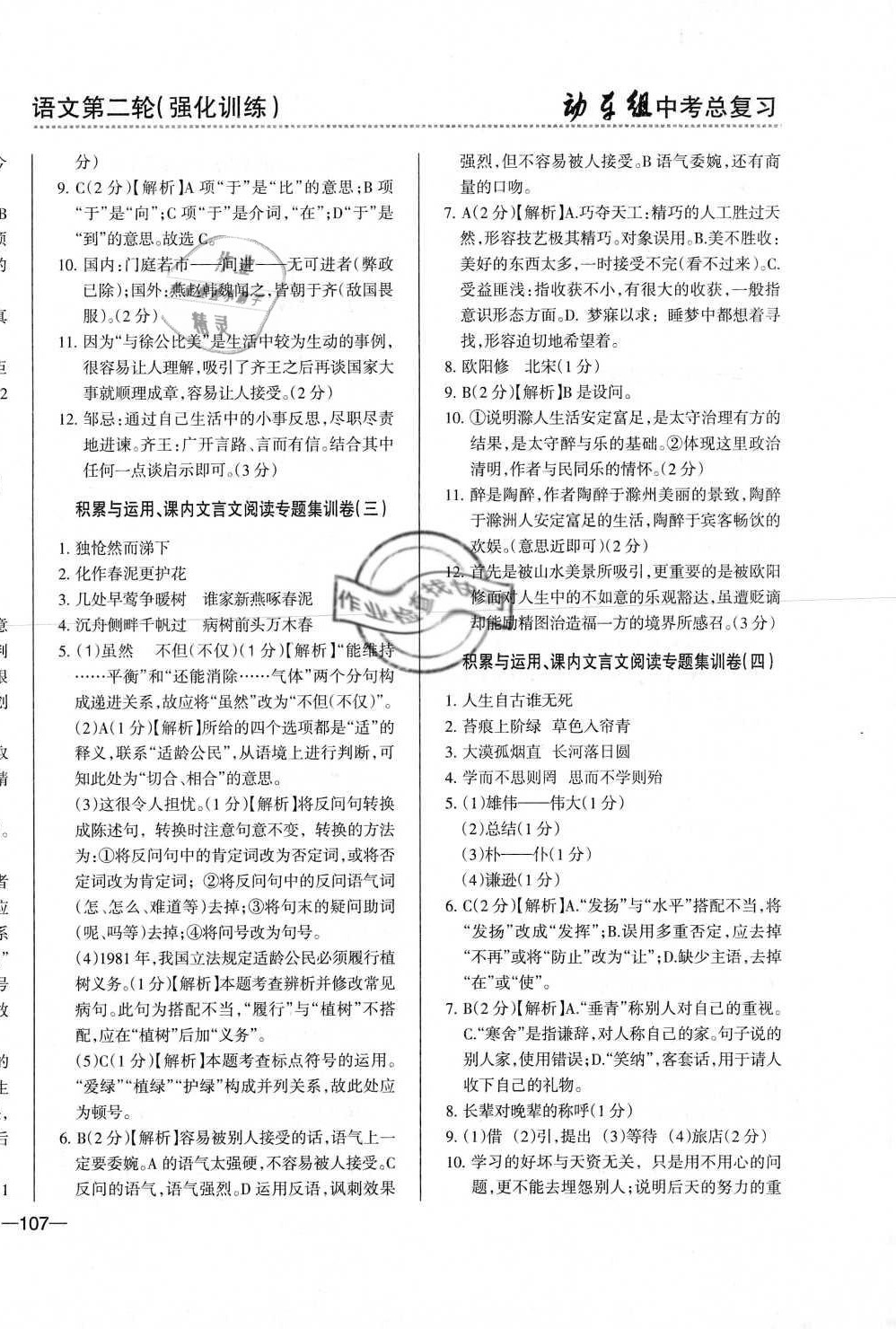 注:目前有些书本章节名称可能整理的还不是很完善,但都是按照顺序排列的,请同学们按照顺序仔细查找。练习册 2021年动车组中考总复习语文第二轮人教版 答案主要是用来给同学们做完题方便对答案用的,请勿直接抄袭。