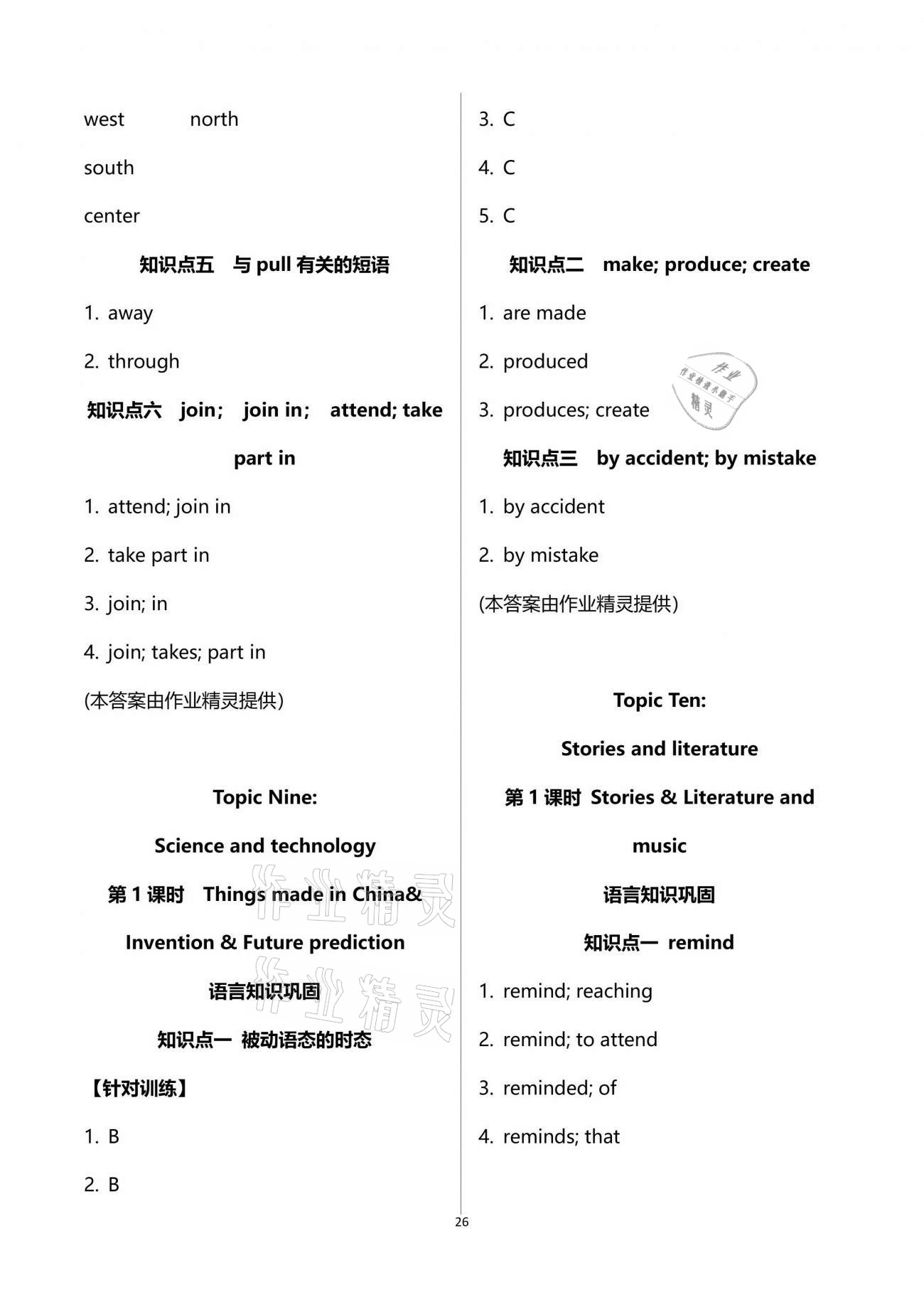 注:目前有些书本章节名称可能整理的还不是很完善,但都是按照顺序排列的,请同学们按照顺序仔细查找。练习册 2021年学典中考话题复习九年级英语中考用书通用版 答案主要是用来给同学们做完题方便对答案用的,请勿直接抄袭。