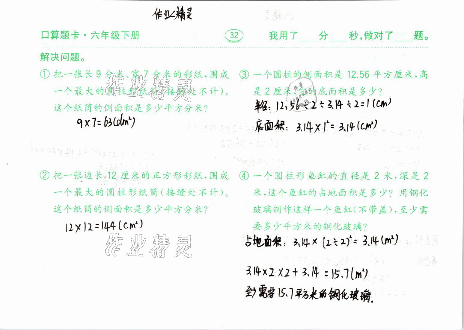2021年口算题卡六年级数学下册青岛版齐鲁书社