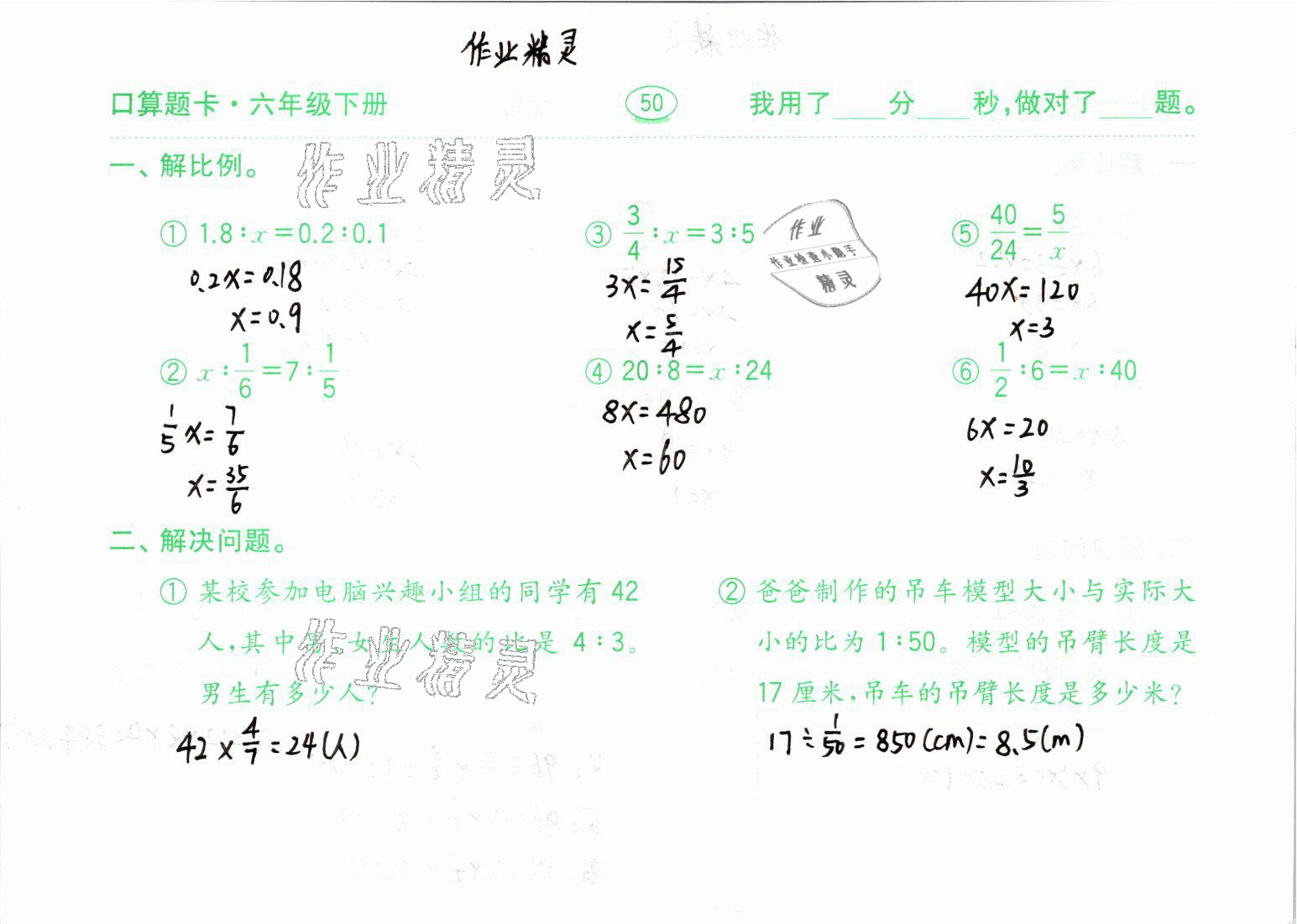 2021年口算题卡六年级数学下册青岛版齐鲁书社