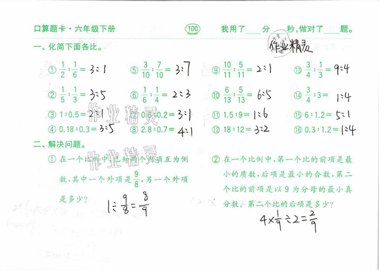 2021年口算题卡六年级数学下册青岛版齐鲁书社