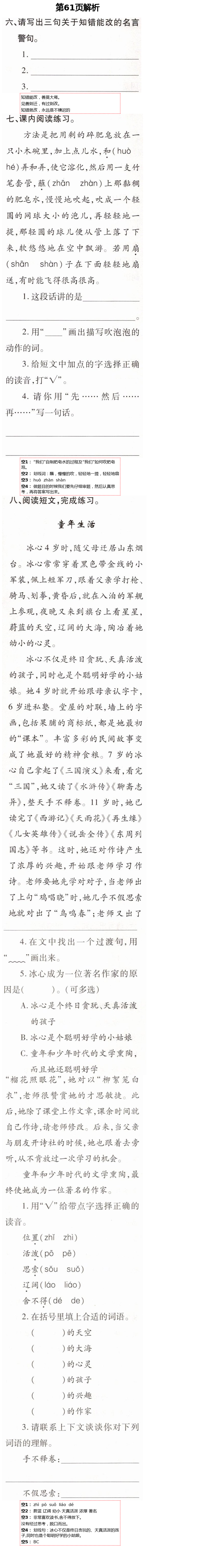 注:目前有些书本章节名称可能整理的还不是很完善,但都是按照顺序排列的,请同学们按照顺序仔细查找。练习册 2021年新课堂同步学习与探究三年级语文下册人教版54制泰安专版 答案主要是用来给同学们做完题方便对答案用的,请勿直接抄袭。