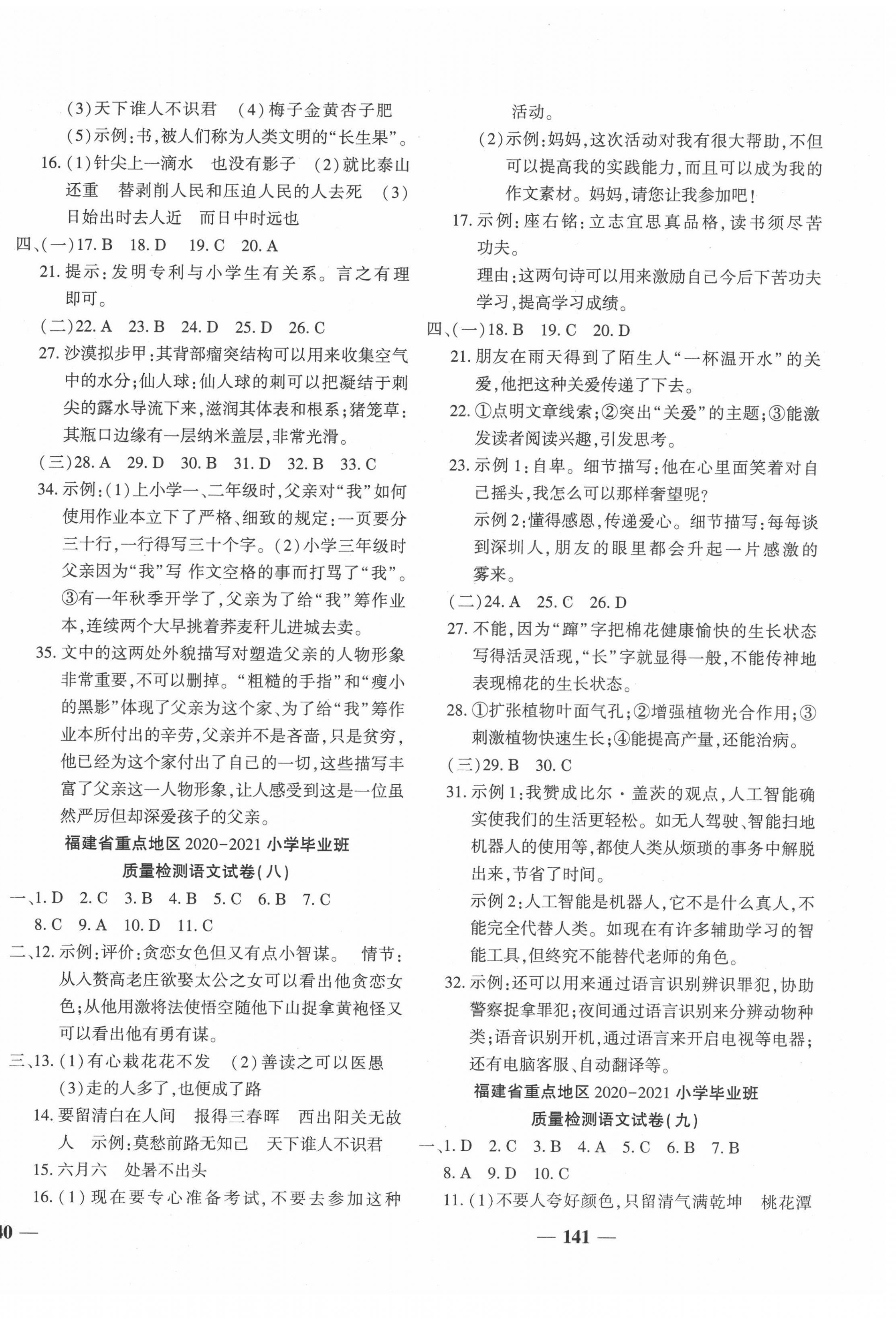 注:目前有些书本章节名称可能整理的还不是很完善,但都是按照顺序排列的,请同学们按照顺序仔细查找。练习册 2021年小学毕业总复习考前冲刺方案六年级语文人教版福建专版 答案主要是用来给同学们做完题方便对答案用的,请勿直接抄袭。