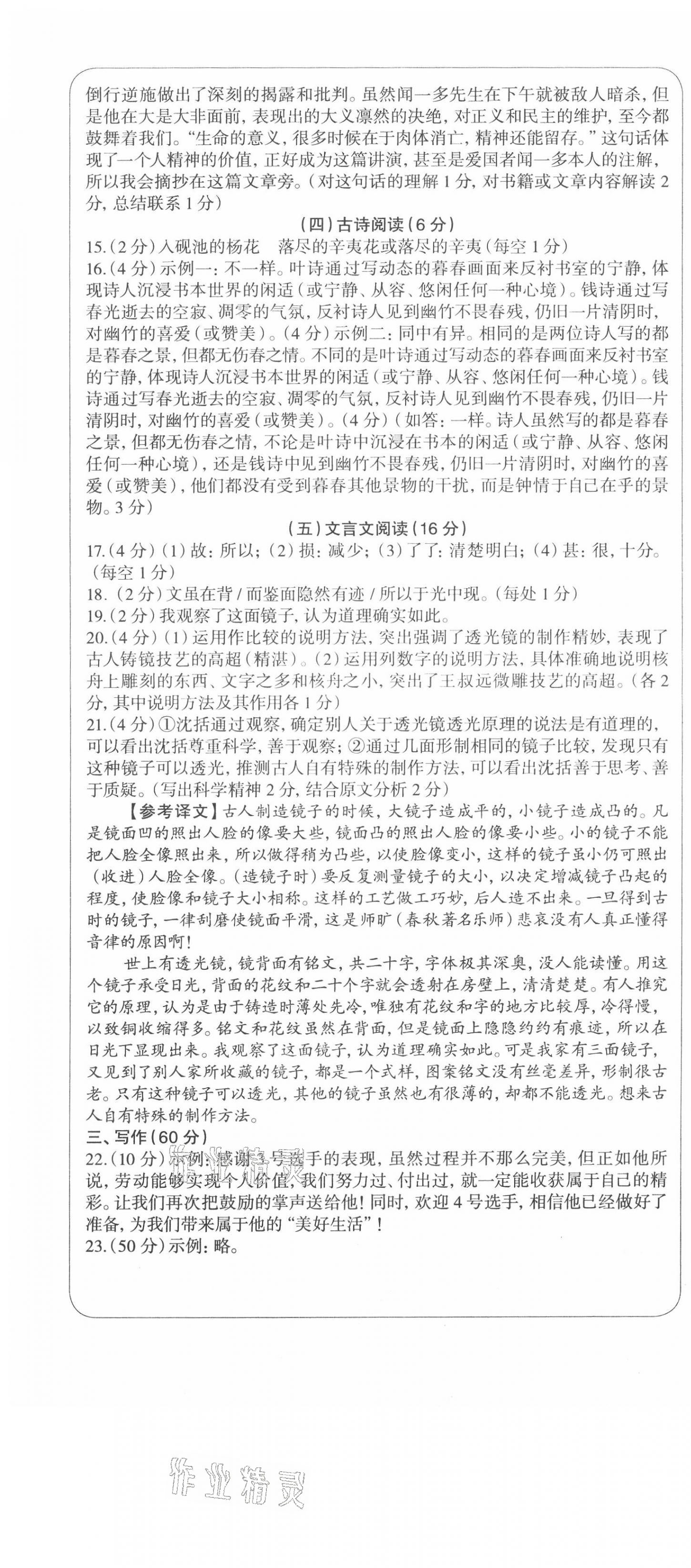 2021年智慧语文读练测八年级下册人教版第四单元