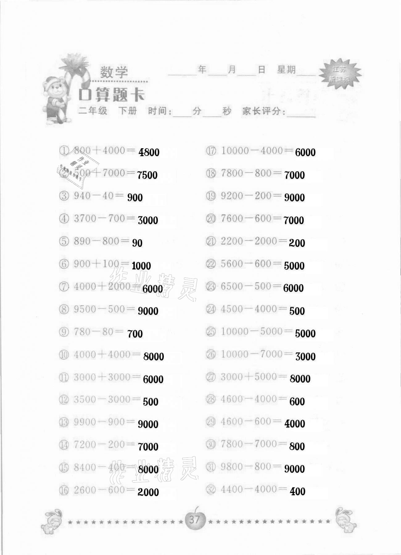 2021年小学数学口算题卡二年级下册苏教版南京大学出版社