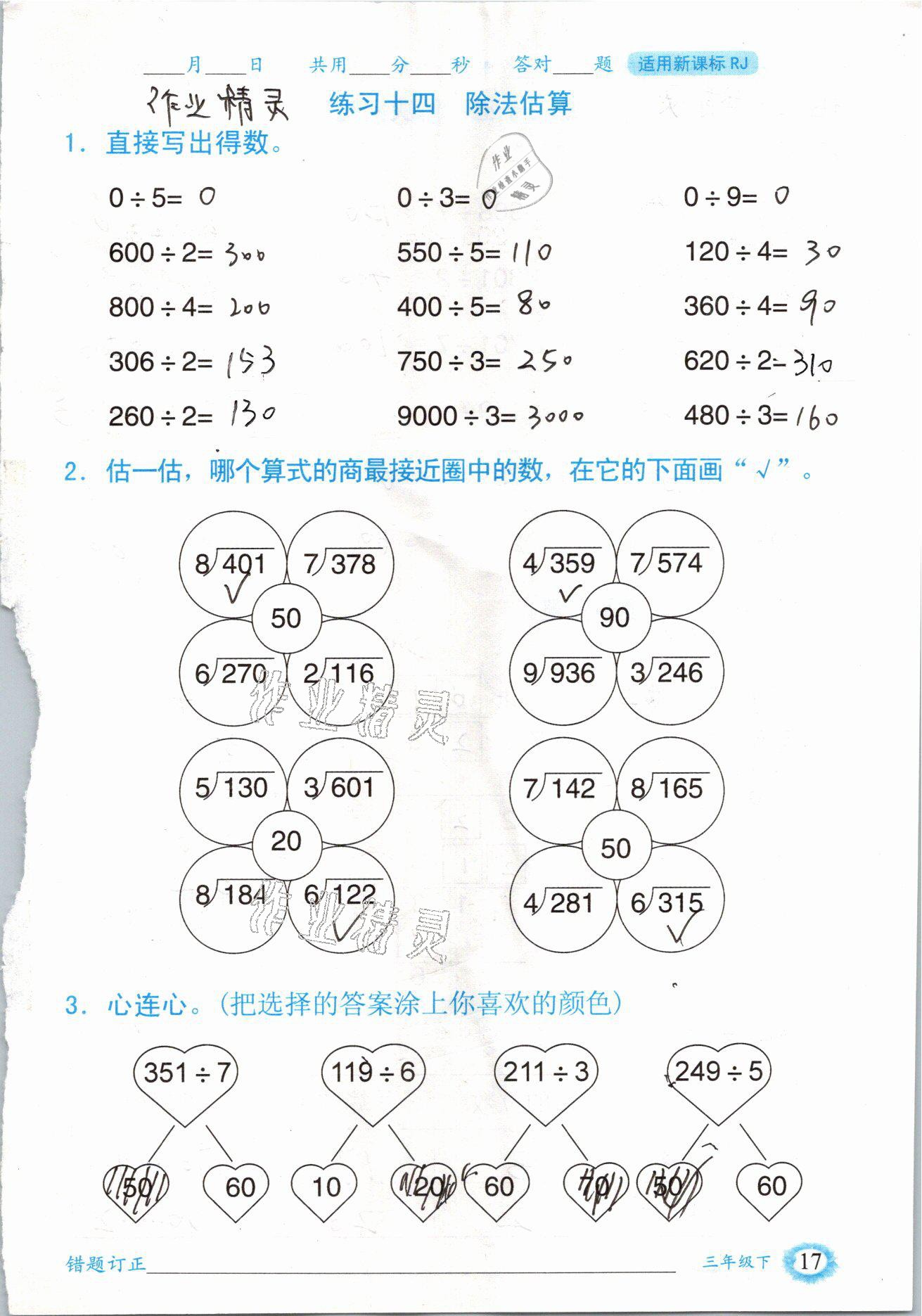 注:目前有些书本章节名称可能整理的还不是很完善,但都是按照顺序排列的,请同学们按照顺序仔细查找。练习册 2021年口算题卡三年级数学下册人教版山东专版四川美术出版社 答案主要是用来给同学们做完题方便对答案用的,请勿直接抄袭。