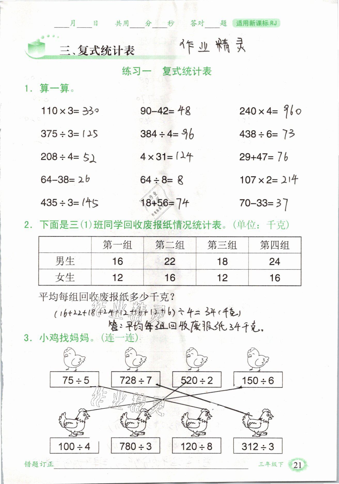 注:目前有些书本章节名称可能整理的还不是很完善,但都是按照顺序排列的,请同学们按照顺序仔细查找。练习册 2021年口算题卡三年级数学下册人教版山东专版四川美术出版社 答案主要是用来给同学们做完题方便对答案用的,请勿直接抄袭。