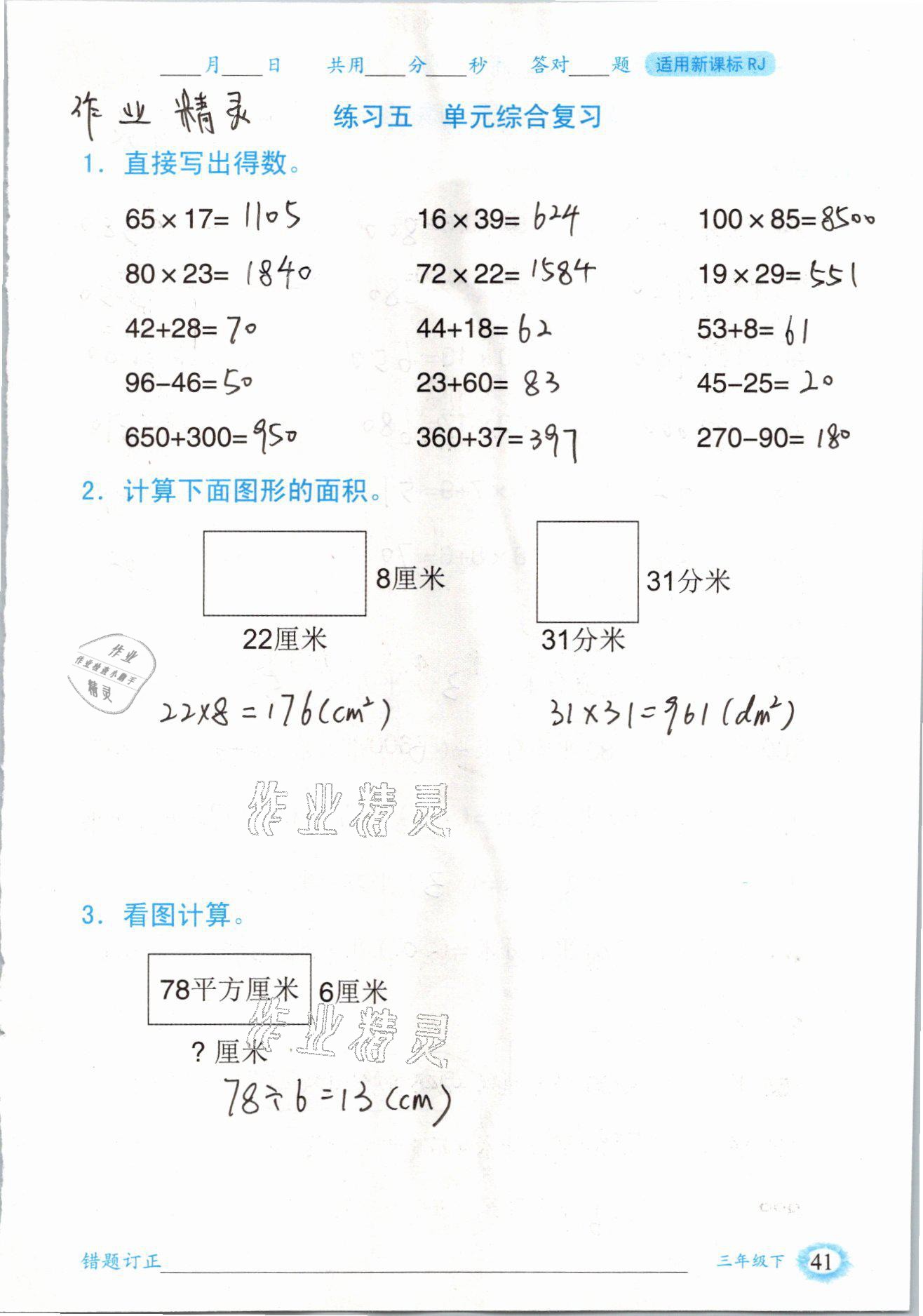 注:目前有些书本章节名称可能整理的还不是很完善,但都是按照顺序排列的,请同学们按照顺序仔细查找。练习册 2021年口算题卡三年级数学下册人教版山东专版四川美术出版社 答案主要是用来给同学们做完题方便对答案用的,请勿直接抄袭。