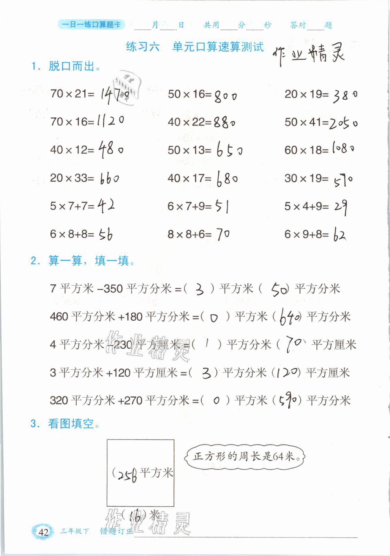 注:目前有些书本章节名称可能整理的还不是很完善,但都是按照顺序排列的,请同学们按照顺序仔细查找。练习册 2021年口算题卡三年级数学下册人教版山东专版四川美术出版社 答案主要是用来给同学们做完题方便对答案用的,请勿直接抄袭。