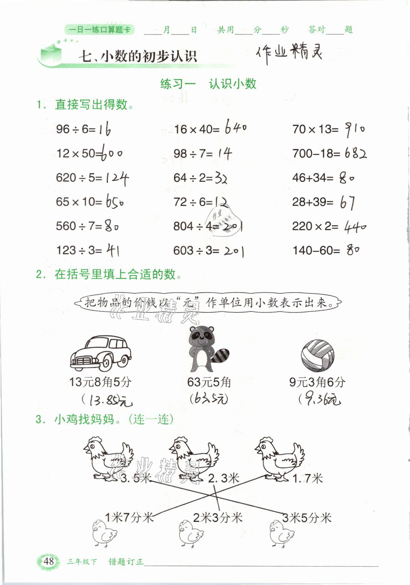 注:目前有些书本章节名称可能整理的还不是很完善,但都是按照顺序排列的,请同学们按照顺序仔细查找。练习册 2021年口算题卡三年级数学下册人教版山东专版四川美术出版社 答案主要是用来给同学们做完题方便对答案用的,请勿直接抄袭。