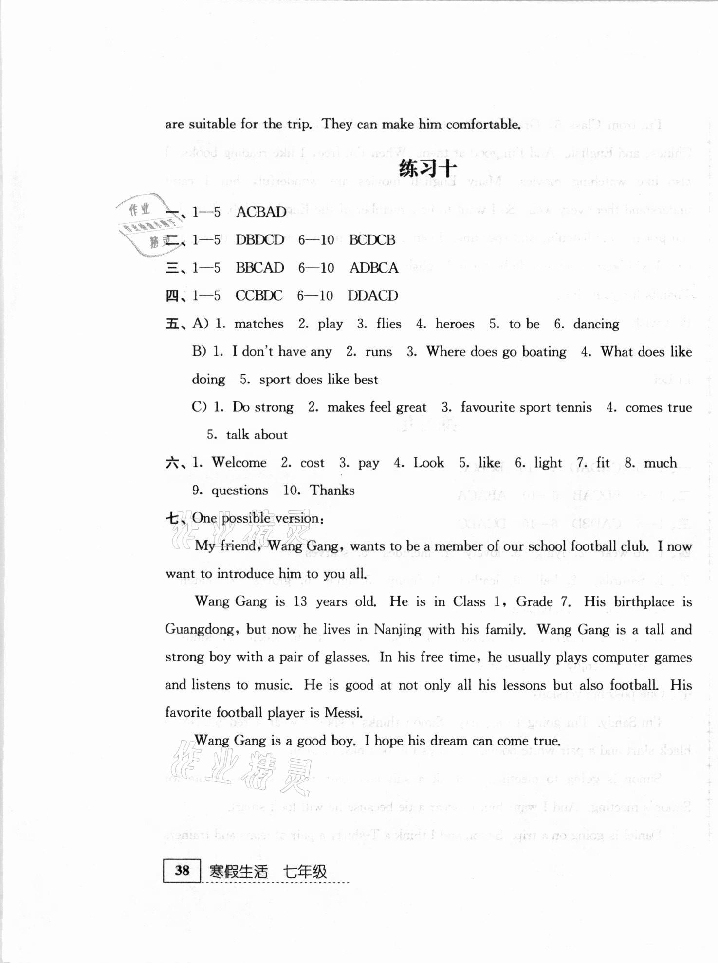 注:目前有些书本章节名称可能整理的还不是很完善,但都是按照顺序排列的,请同学们按照顺序仔细查找。练习册 2021年寒假生活七年级英语江苏人民出版社 答案主要是用来给同学们做完题方便对答案用的,请勿直接抄袭。