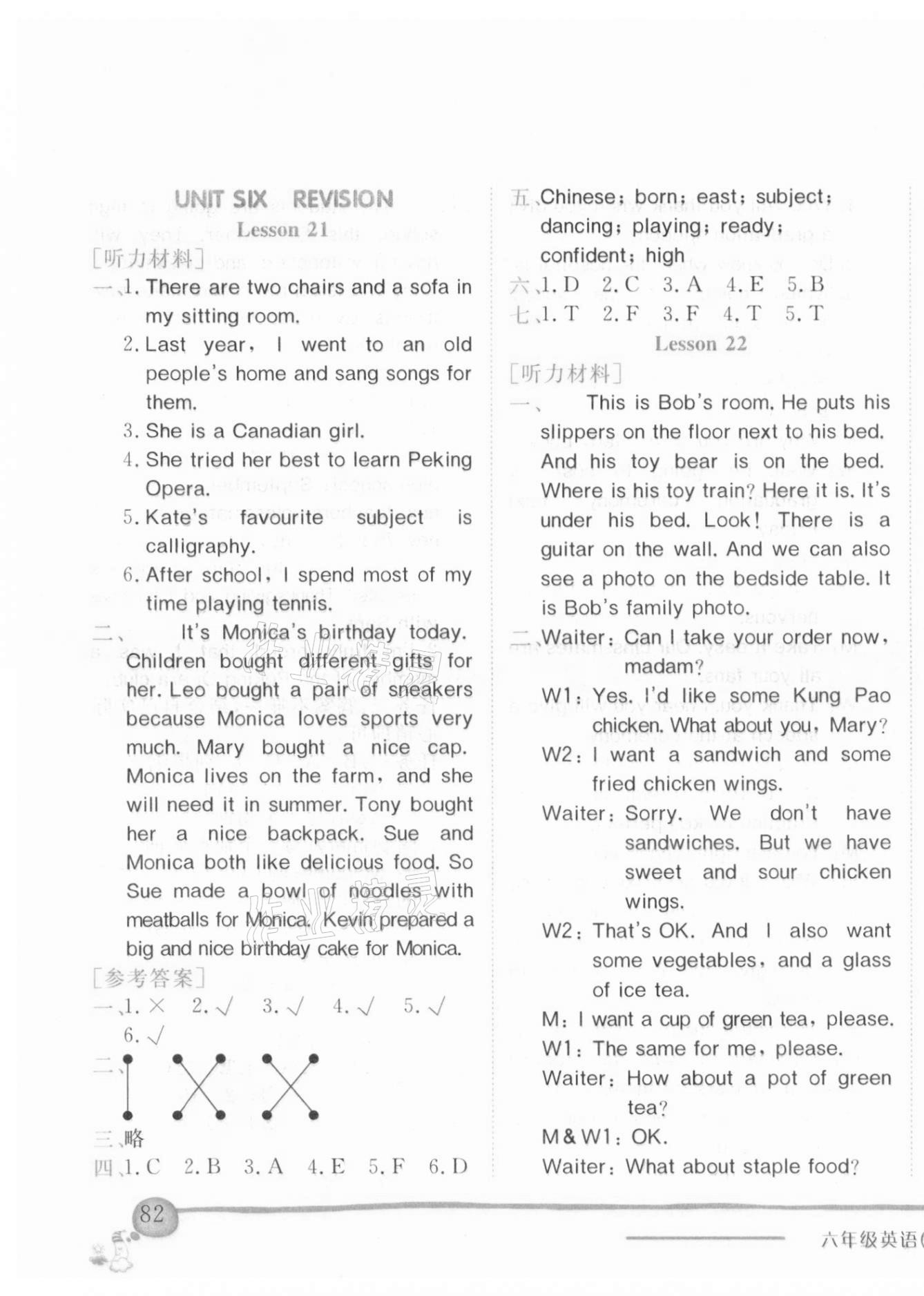 注:目前有些书本章节名称可能整理的还不是很完善,但都是按照顺序排列的,请同学们按照顺序仔细查找。练习册 2021年黄冈小状元作业本六年级英语下册北京课改版 答案主要是用来给同学们做完题方便对答案用的,请勿直接抄袭。