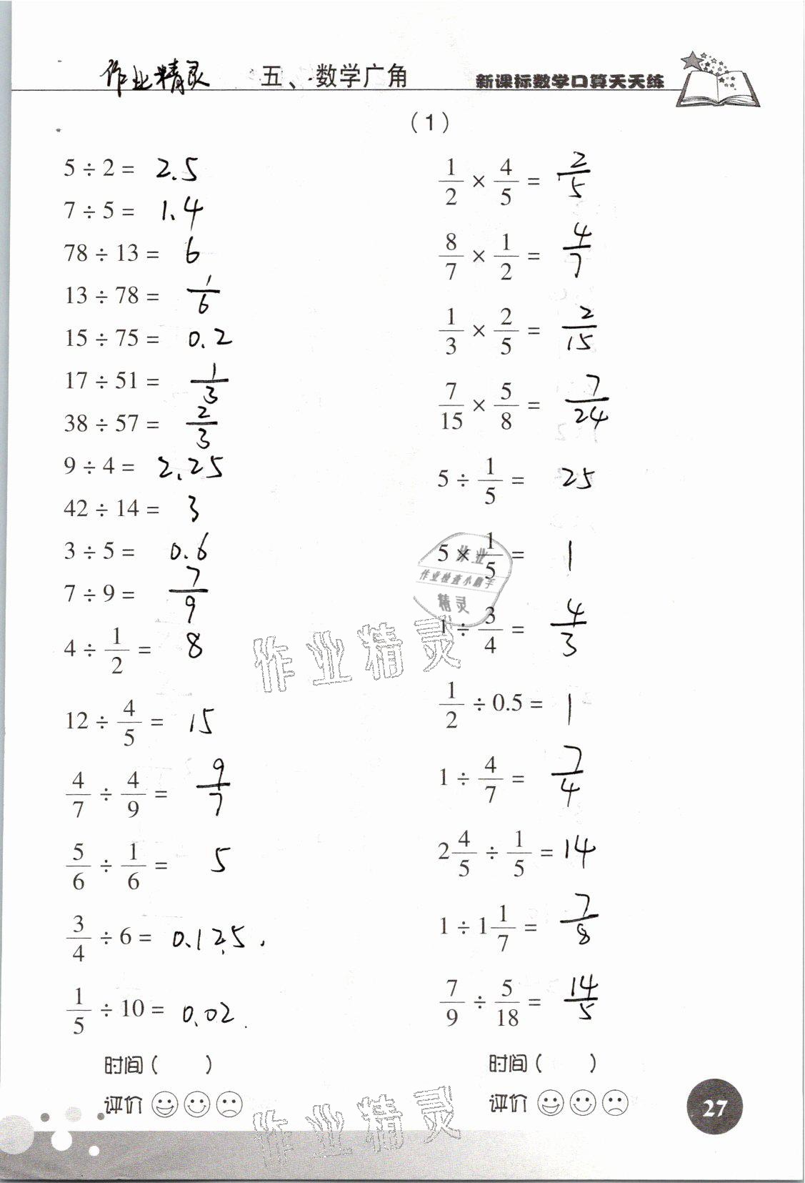 注:目前有些书本章节名称可能整理的还不是很完善,但都是按照顺序排列的,请同学们按照顺序仔细查找。练习册 2021年新课标数学口算天天练六年级下册人教版 答案主要是用来给同学们做完题方便对答案用的,请勿直接抄袭。