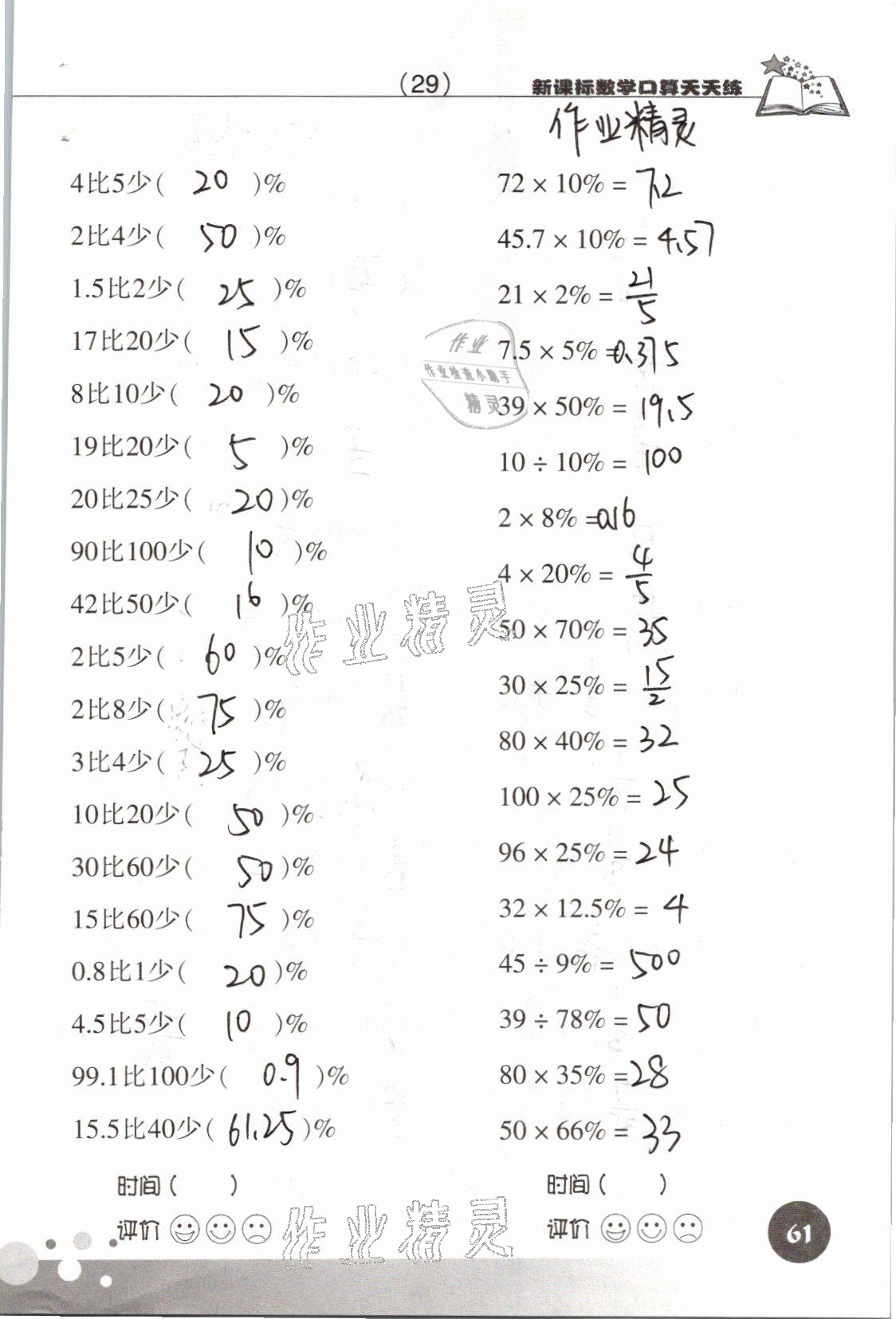 注:目前有些书本章节名称可能整理的还不是很完善,但都是按照顺序排列的,请同学们按照顺序仔细查找。练习册 2021年新课标数学口算天天练六年级下册人教版 答案主要是用来给同学们做完题方便对答案用的,请勿直接抄袭。
