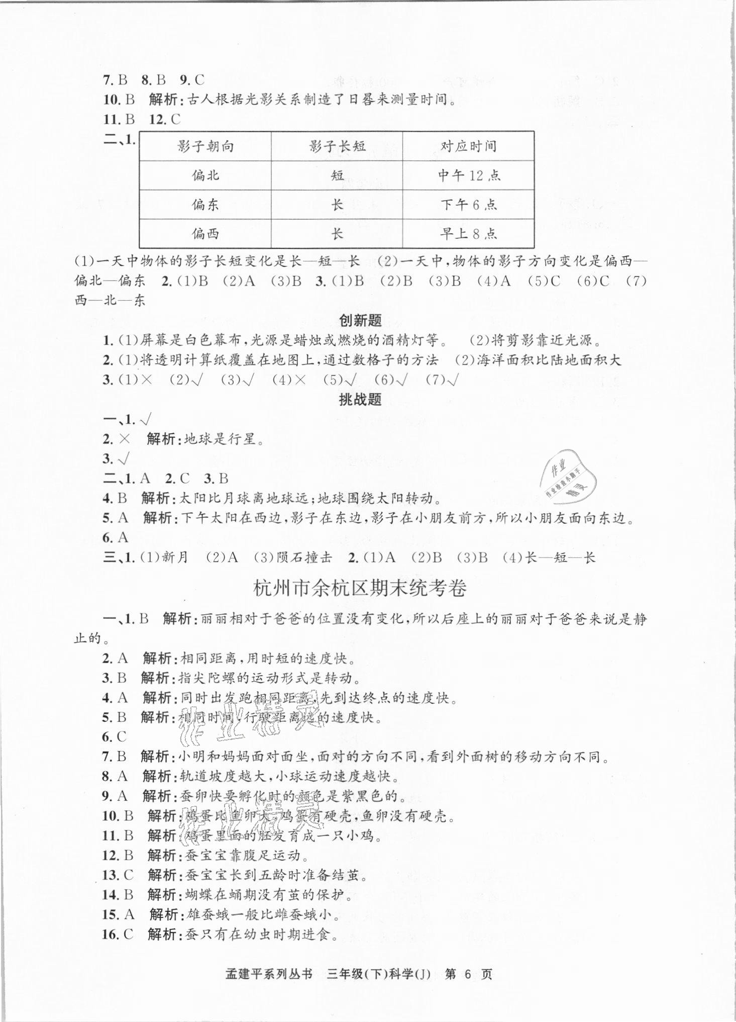 注:目前有些书本章节名称可能整理的还不是很完善,但都是按照顺序排列的,请同学们按照顺序仔细查找。练习册 2021年孟建平各地期末试卷精选三年级科学下册教科版台州专版 答案主要是用来给同学们做完题方便对答案用的,请勿直接抄袭。