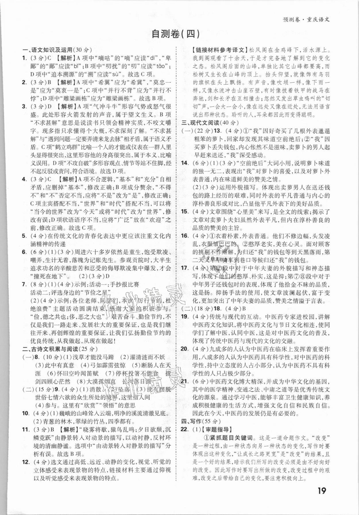 2021年万唯中考预测卷语文重庆专版