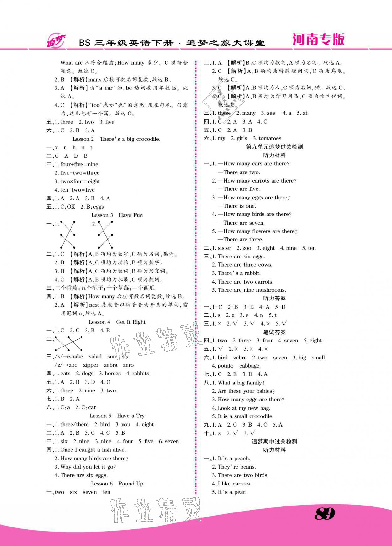2021年追梦之旅大课堂三年级英语下册北师大版河南专版