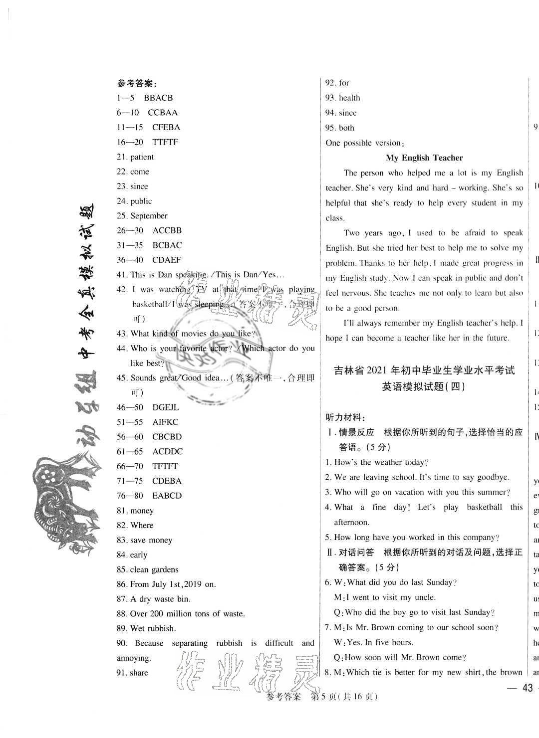 注:目前有些书本章节名称可能整理的还不是很完善,但都是按照顺序排列的,请同学们按照顺序仔细查找。练习册 2021年中考全真模拟试题英语吉林专版 答案主要是用来给同学们做完题方便对答案用的,请勿直接抄袭。