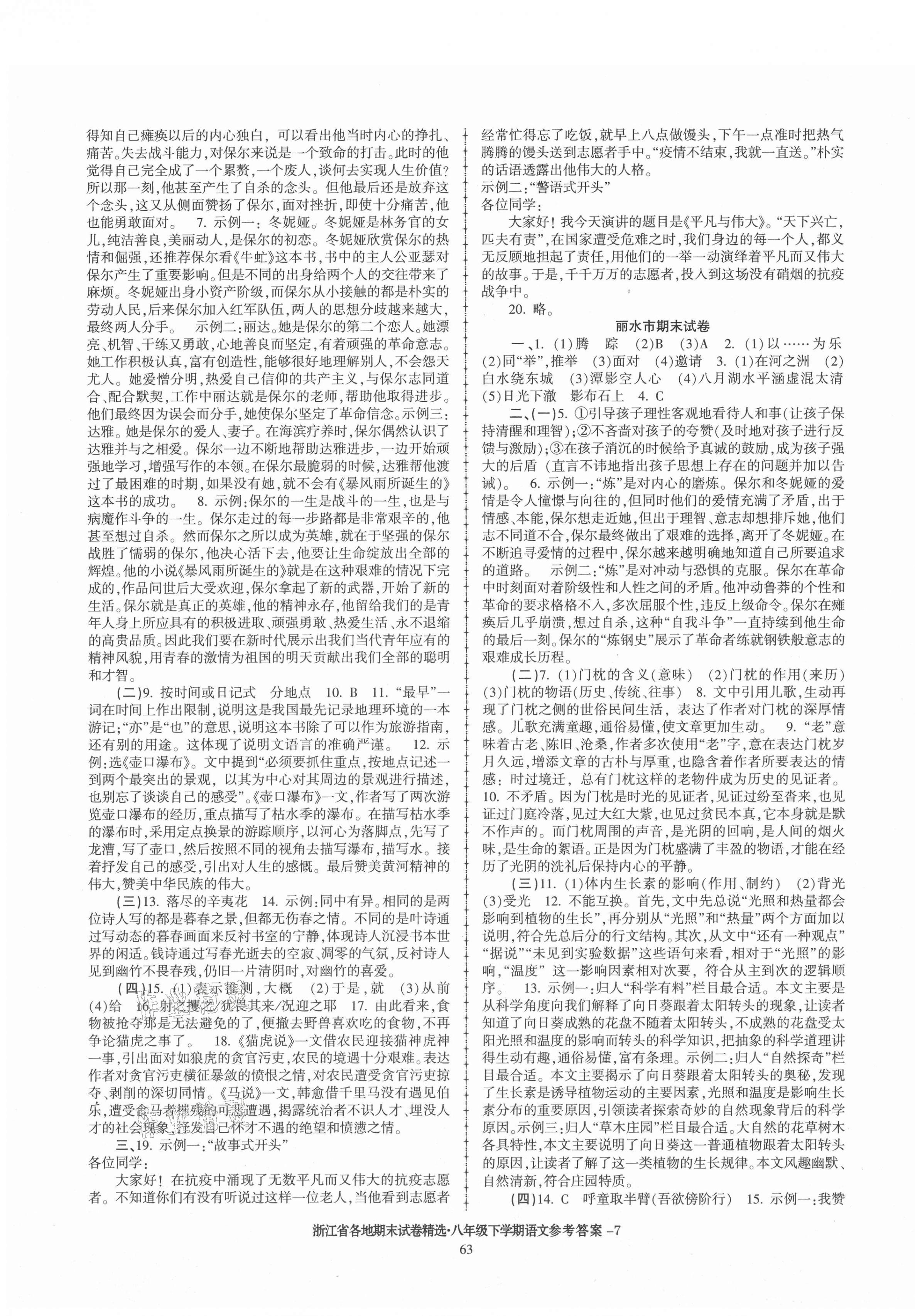 注:目前有些书本章节名称可能整理的还不是很完善,但都是按照顺序排列的,请同学们按照顺序仔细查找。练习册 2021年浙江省各地期末试卷精选八年级语文下册人教版 答案主要是用来给同学们做完题方便对答案用的,请勿直接抄袭。