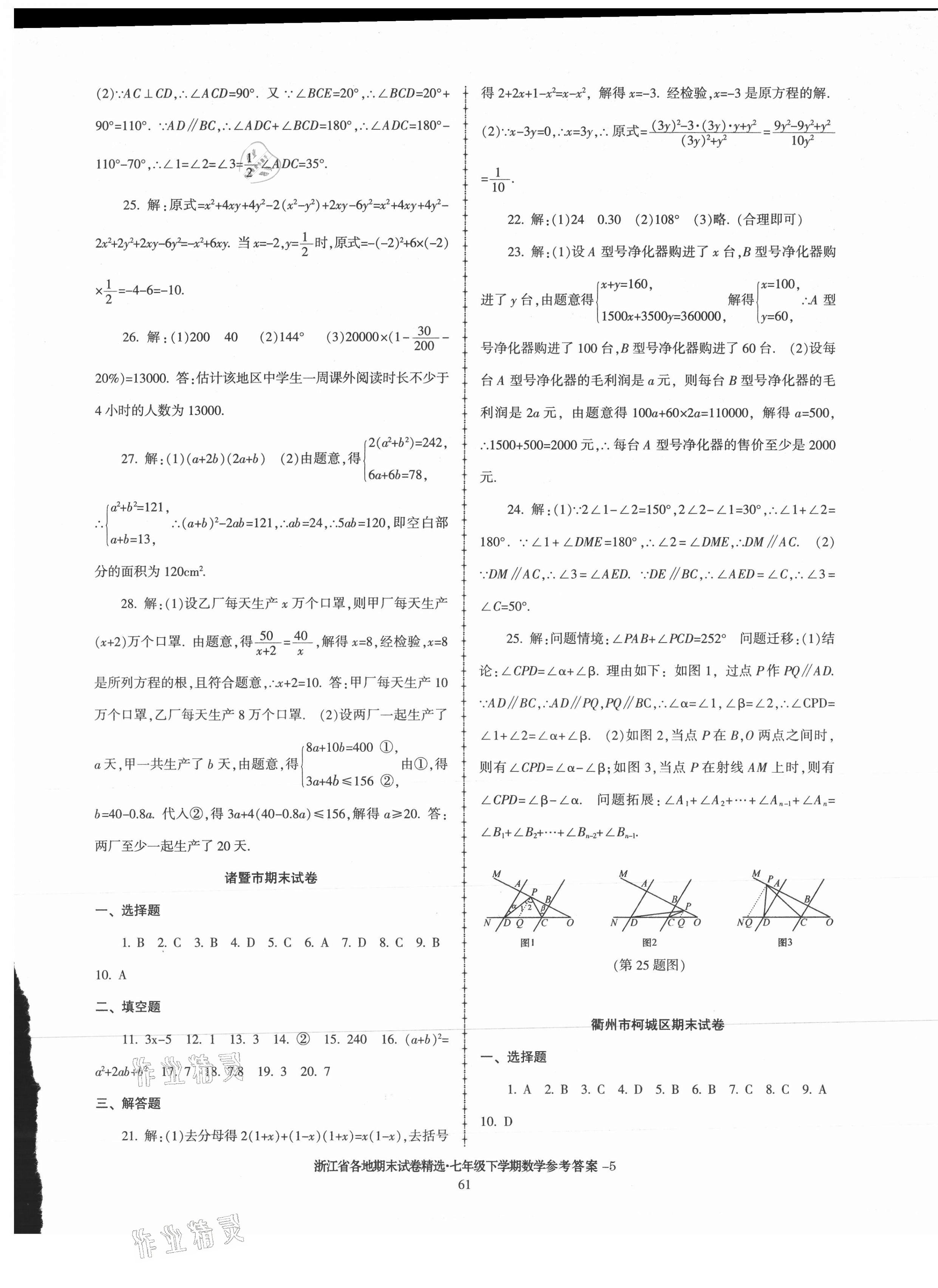 注:目前有些书本章节名称可能整理的还不是很完善,但都是按照顺序排列的,请同学们按照顺序仔细查找。练习册 2021年浙江省各地期末试卷精选七年级数学下册浙教版 答案主要是用来给同学们做完题方便对答案用的,请勿直接抄袭。